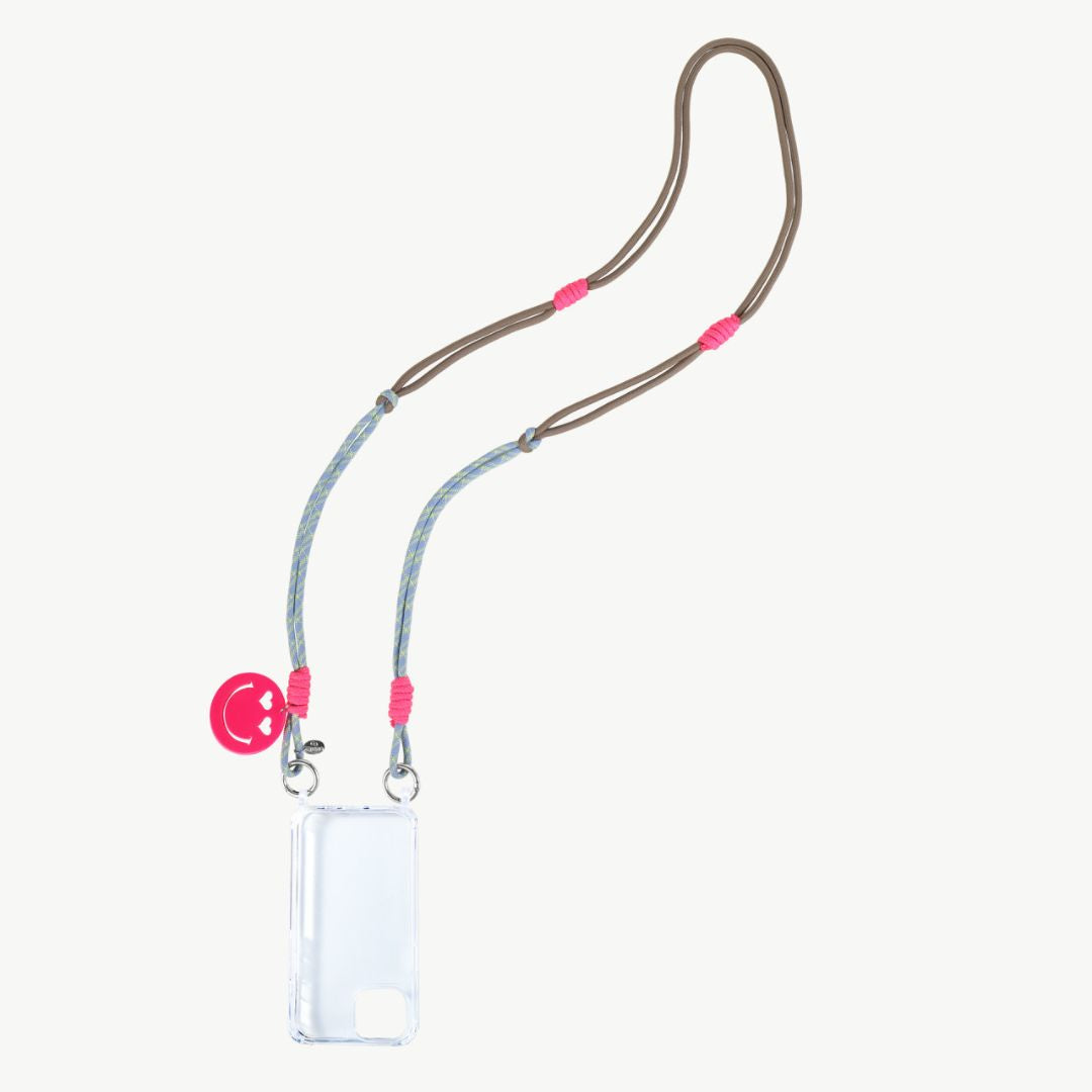 Handykette lang mit Smiley Face Anhänger blau/braun