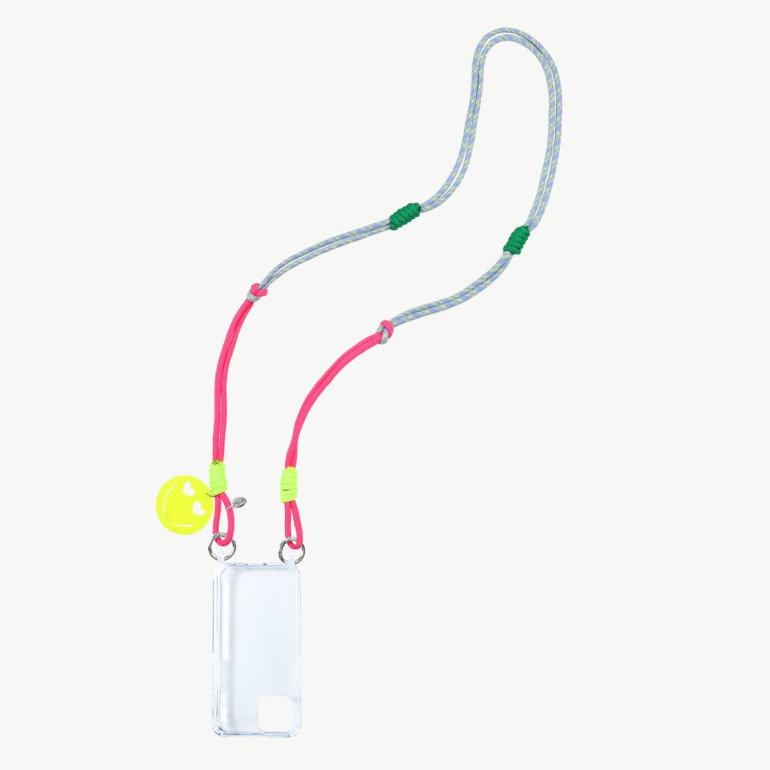 Handykette lang mit Smiley Face Anhänger pink/blau