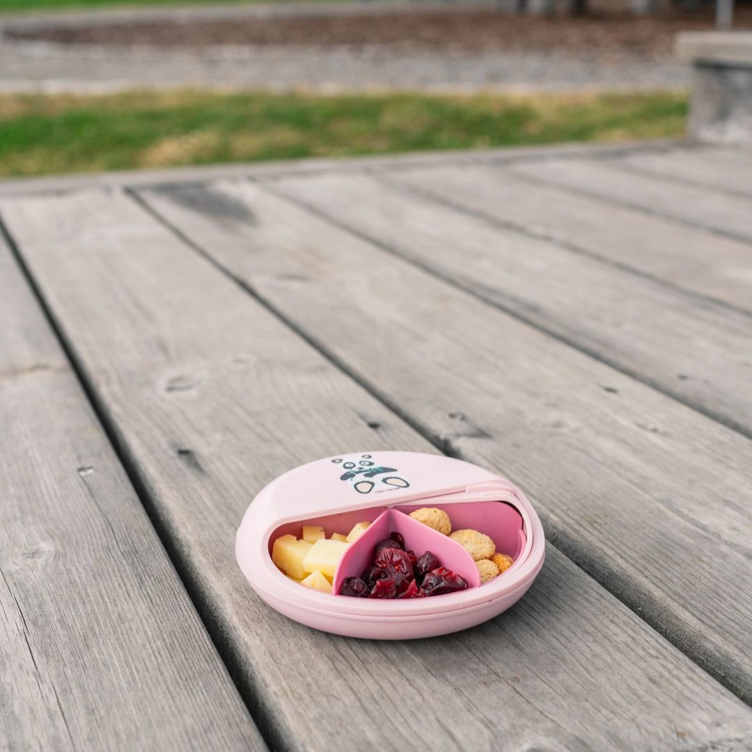 Mit der SnackDisc in zartem Rosa und dem niedlichen Panda-Design wird die Snack-Zeit deines Kindes zu einem fröhlichen Highlight. Diese innovative Snackbox ist die ideale Lösung, um gesunde Kleinigkeiten sicher, ordentlich und nachhaltig aufzubewahren. Ob Beeren, Nüsse, Trauben oder kleine Cracker – mit der SnackDisc bleiben alle Snacks frisch, geschützt und perfekt portioniert.