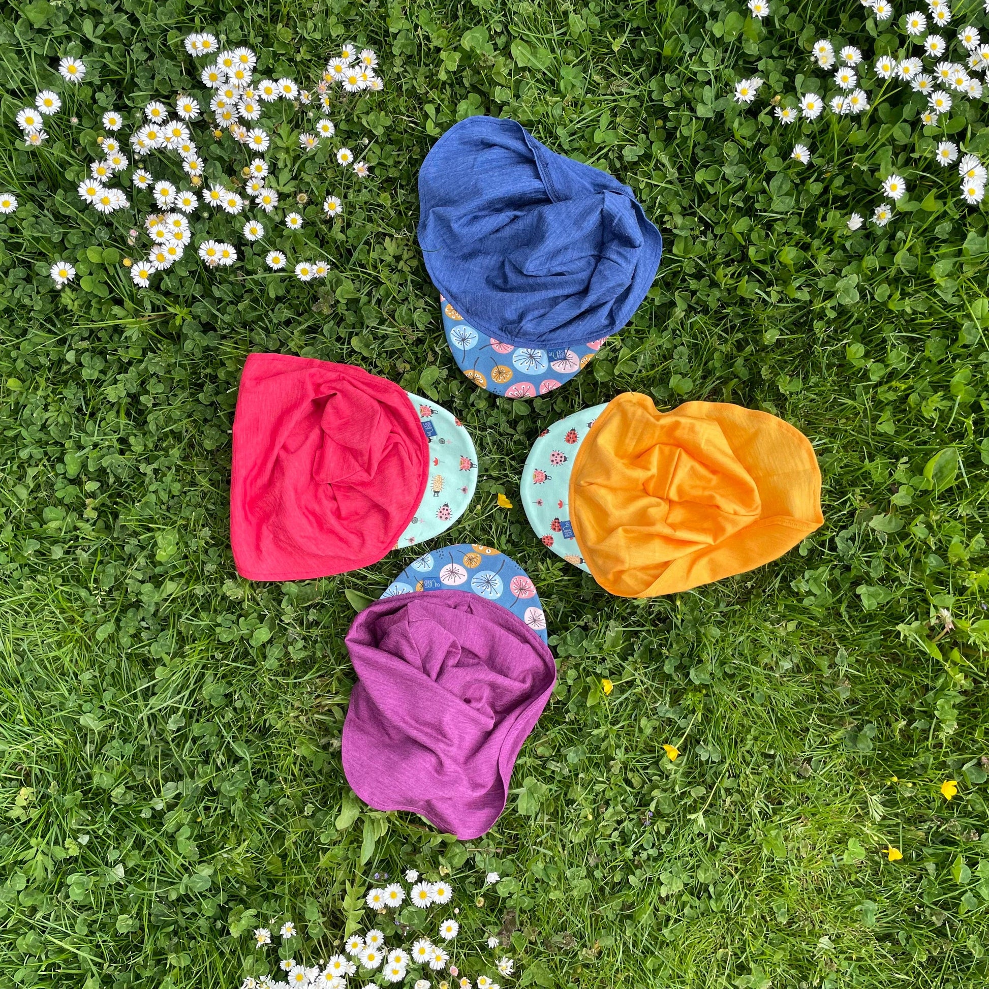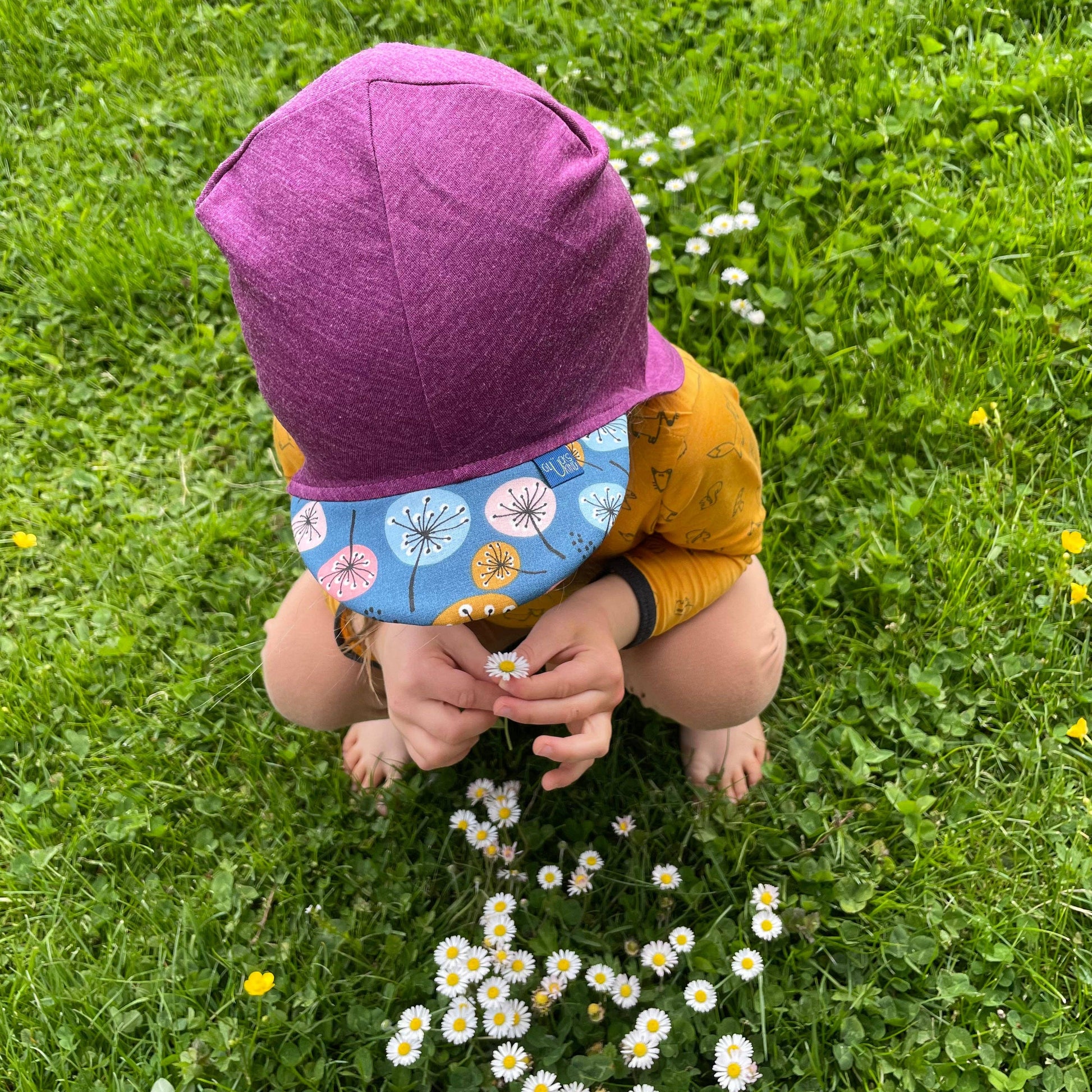 Sommerkappe Merinowolle & Seide (bio/GOTS) - limited edition Pusteblume und Käfer