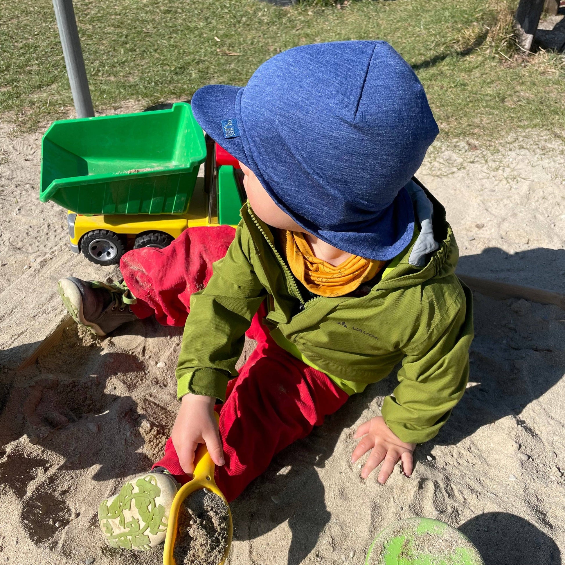 Wir lieben Sonnenschein - und es ist extrem wichtig gerade die zarte Haut von Babys und Kindern vor der Sonne zu schützen!  Diese Sommerkappe kann immer getragen werden - ein Wunderwerk der besten natürlichen Materialien : 70% extrafeine Merinowolle veredelt mit 30% Maulbeerseide - ein Traum.