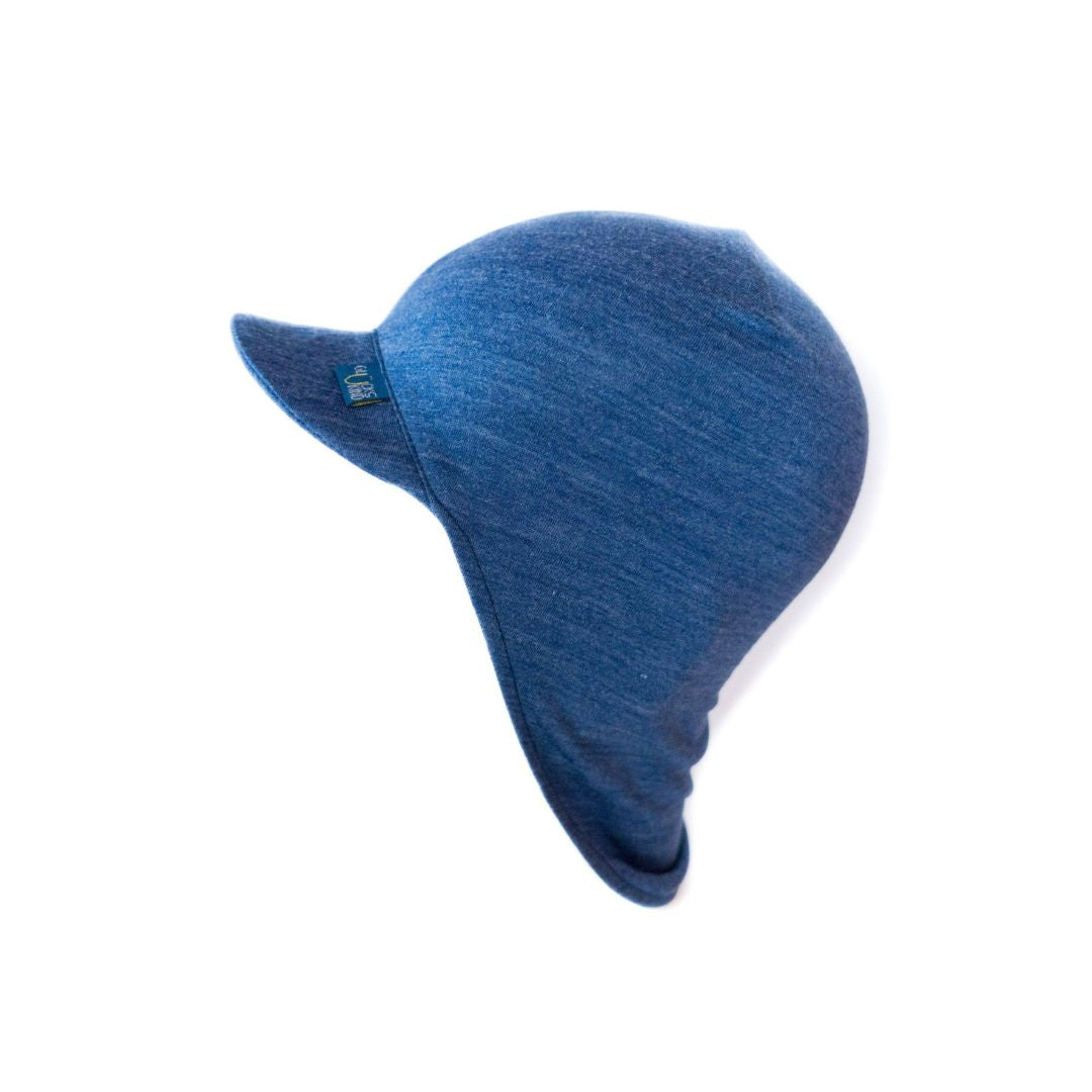Sommerkappe Merinowolle & Seide blau uni