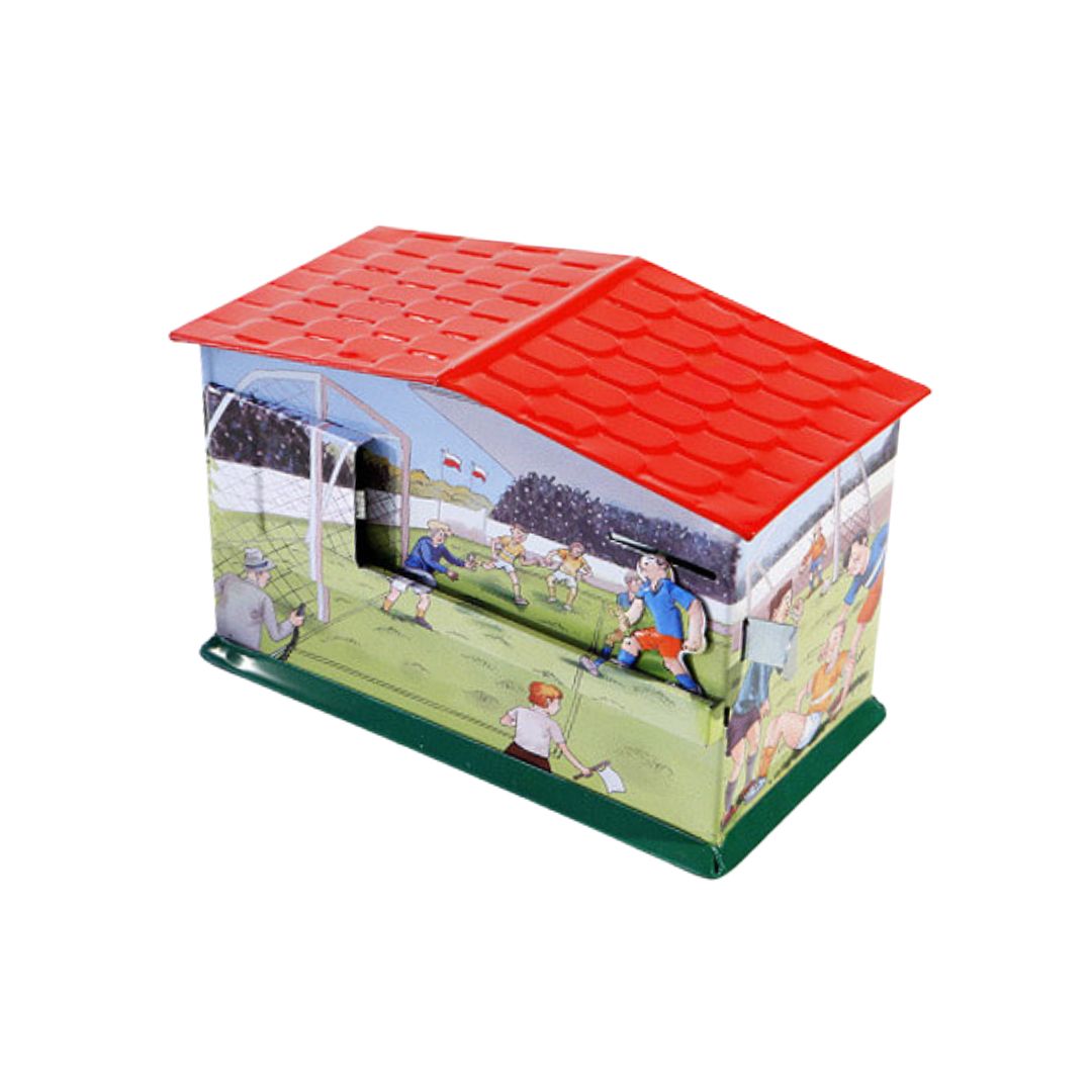 Spielerisch Geld sparen mit der Fußball Spardose Mit der Fußball Spardose "Football" wird das Sparen zu einem echten Vergnügen! Dieses einzigartige Sparschwein begeistert nicht nur Kinder, sondern auch Sammler und Fußballfans. Nachdem das mechanische Werk aufgezogen wurde, wird eine Münze auf das Fußballfeld vor das Tor gelegt. Sobald das Geldstück den schwarzen Schalter berührt, wird eine clevere Mechanik ausgelöst: Ein kleiner Fußballspieler tritt den Ball und befördert die Münze ins Tor – ein faszinierendes Schauspiel, das immer wieder Freude bereitet!