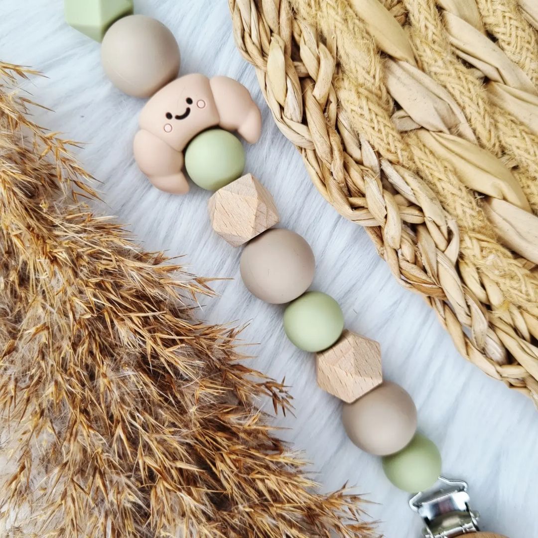 Mache jeden Tag ein Spektakel aus den Accessoires deines Kleinen mit unserem wittzigen Schnullerband mit Croissant! Mit Liebe und Handwerkskunst entworfen, verleiht dieses Schnullerband nicht nur eine persönliche Note, sondern hält auch den Lieblingsschnuller deines Kleinen immer griffbereit. Verliere nie wieder einen Schnuller im Wirrwarr der Wickeltaschen oder unterwegs – unsere Schnullerbänder sind die perfekte Mischung aus Stil und Funktionalität. Wähle eure Lieblingsfarben und -designs und freue dich immer wieder an dem süßen Produkt. Alle Perlen sind BPA-frei und zertifiziert. Die Schnullerketten werden mit viel Liebe und Sorgfalt hergestellt. Sicherheit ist uns sehr wichtig. Deshalb überprüfen wir die Schnullerbänder sorgfältig nach der Norm NEN12586.