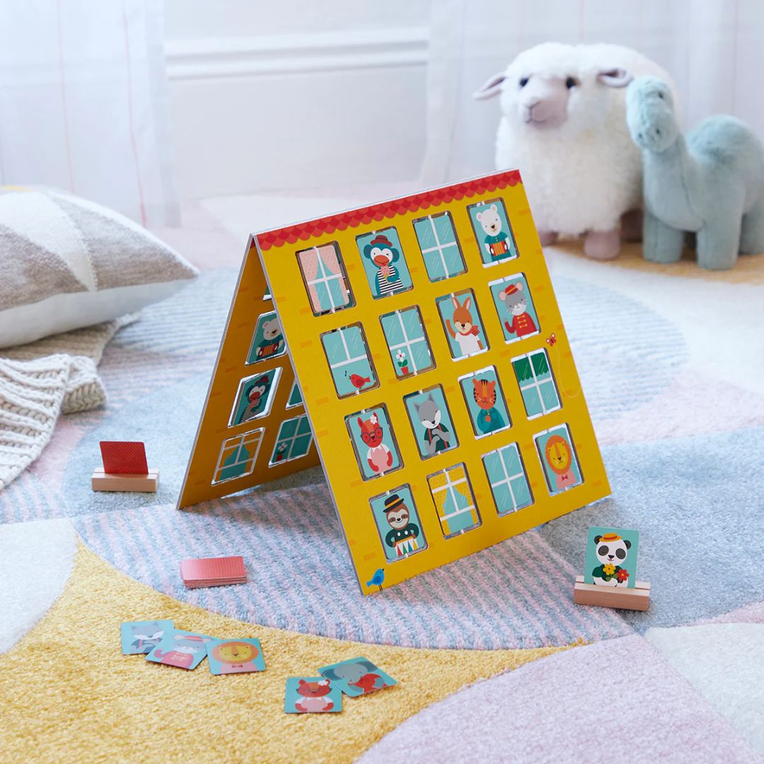 Ein klassisches und lustiges Spiel für zwei Spieler, mit einem einzigartigen doppelseitigen Spielbrett mit umdrehbaren Fenstern.