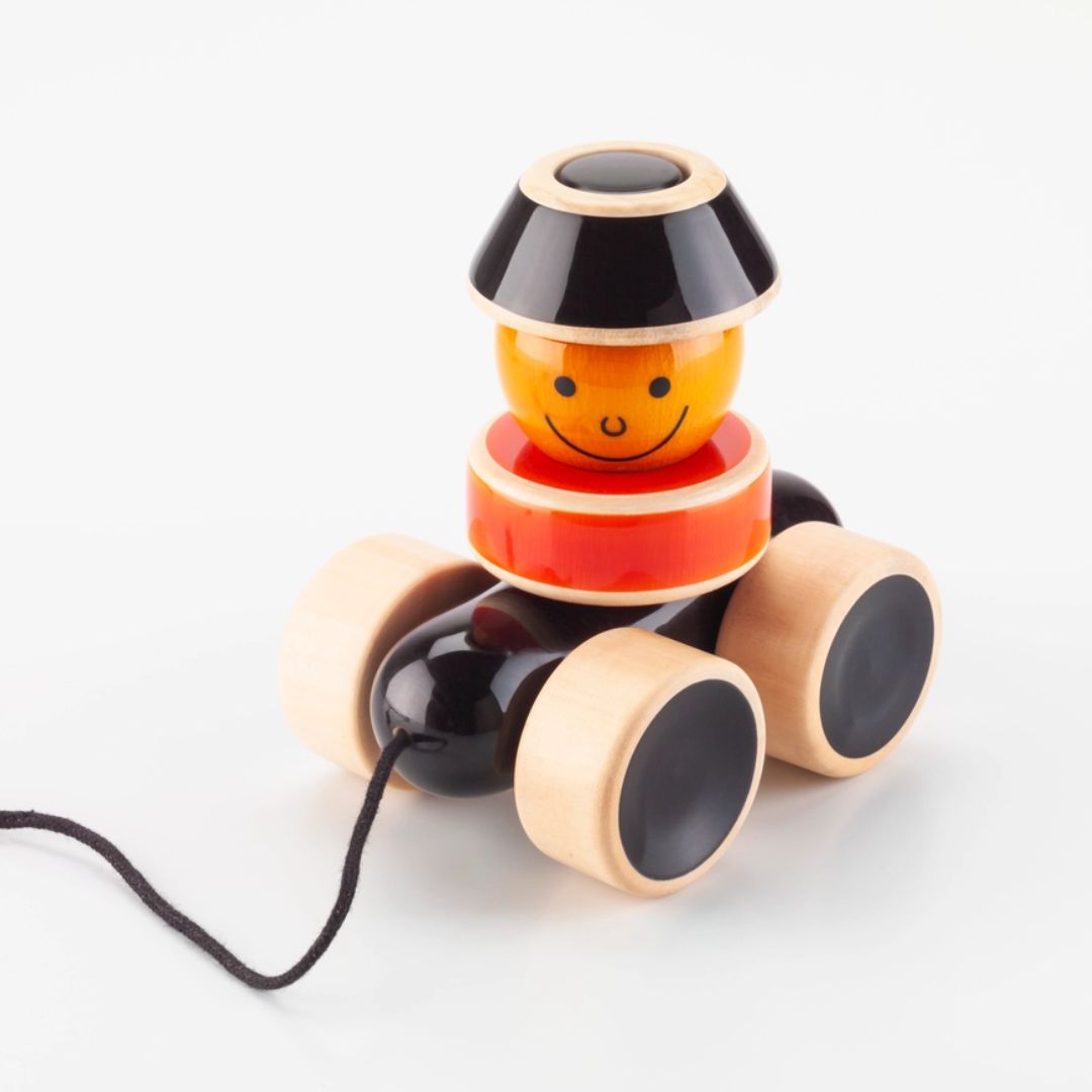Jedes Exemplar von Go Go entsteht mit Liebe zum Detail. Die sorgfältige Auswahl der Hölzer, die natürliche Färbung durch Gewürze und die glatte, sichere Oberfläche machen Go Go zu einem Spielzeug, das du mit gutem Gefühl weiterreichen kannst. Die Formgebung ist optimal auf kleine Hände abgestimmt – ohne scharfe Kanten, splitterfrei und angenehm im Griff. Auch das Ziehband ist so konzipiert, dass es leicht zu greifen ist und deinem Baby das selbstständige Ziehen erleichtert.