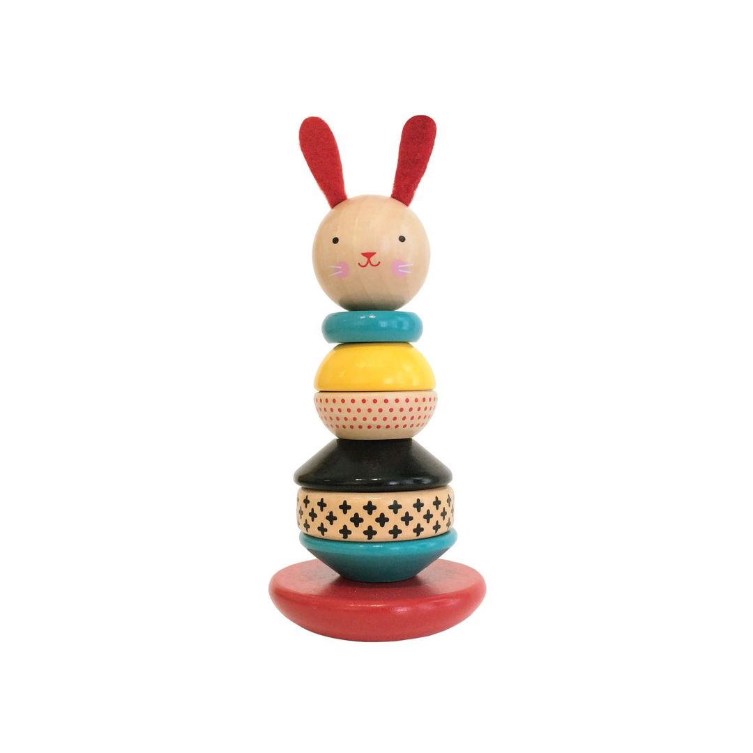 Unser Bestseller Modern Bunny Stacker bietet Design und Freude. Baue den Hasen, indem du die sechs Holzringe in beliebiger Reihenfolge auf den Pfosten stapelst. Die glatte, abgerundete Basis sorgt für eine sanfte Bewegung beim Spielen.