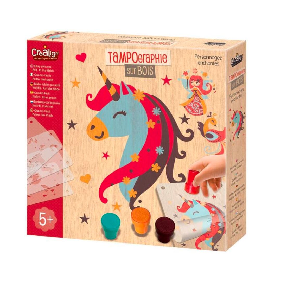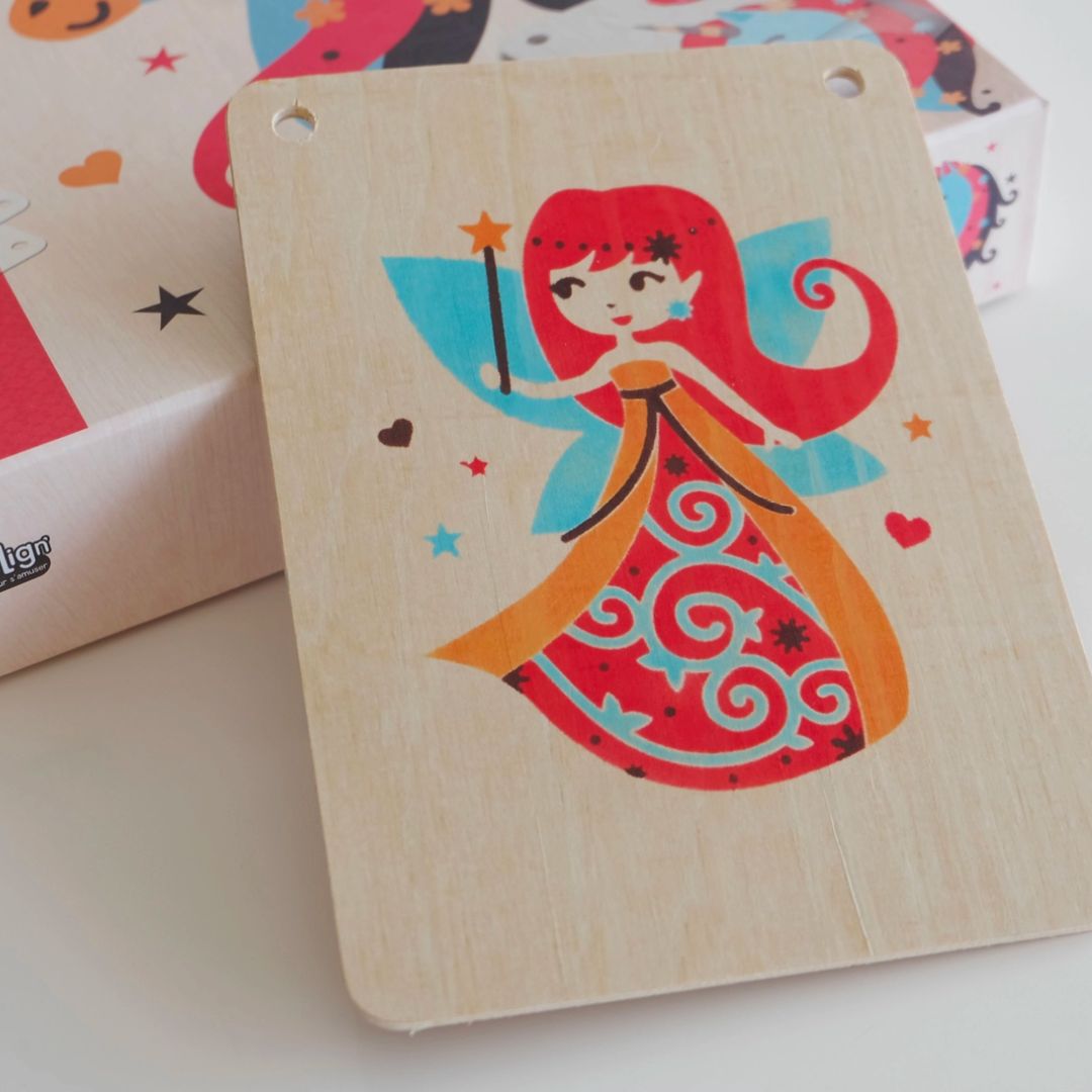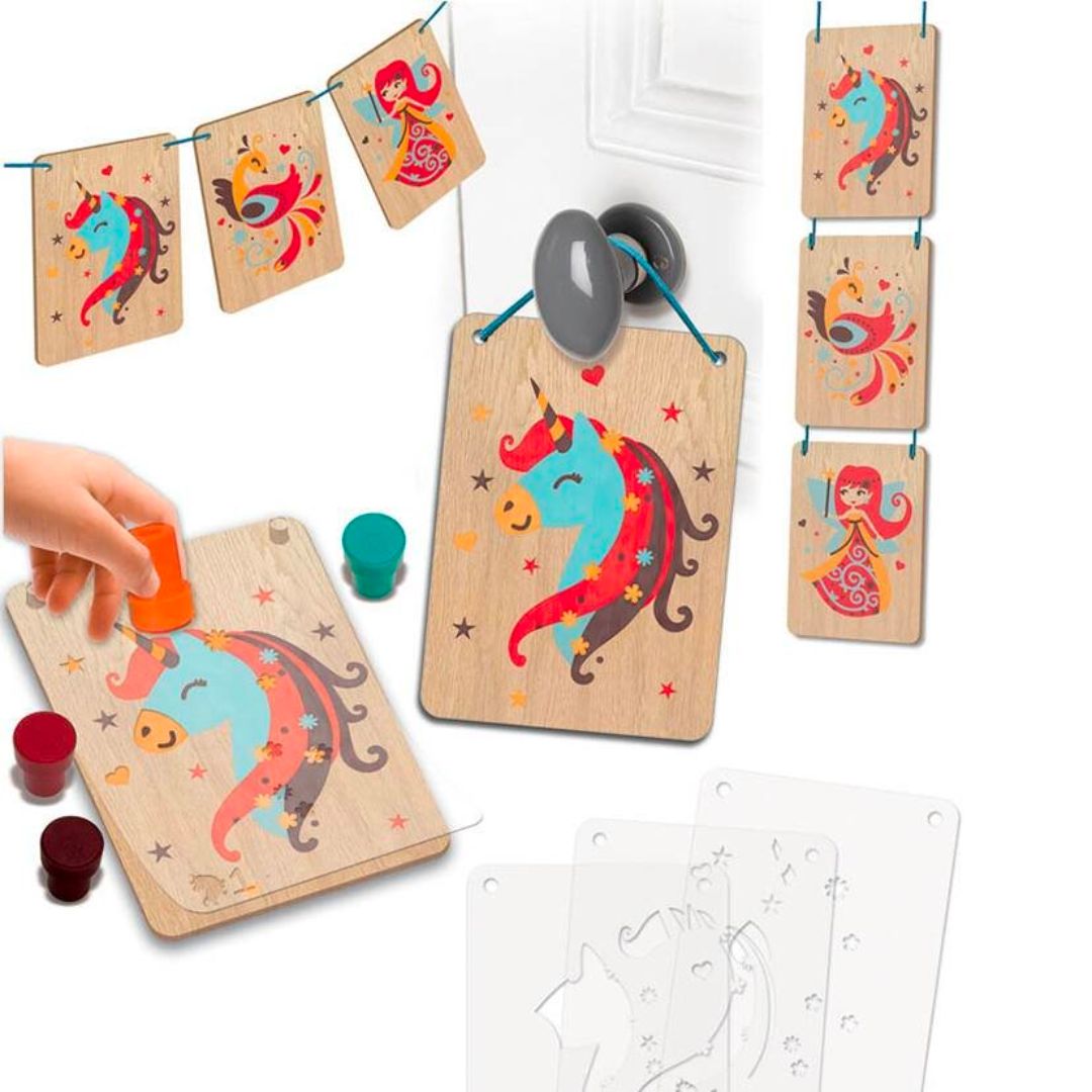 Boxen, die das Zeichnen auf schönen Holzbrettern erleichtern. Dank der Schablonentechnik (eine Schablone für jede Farbe) sind die Bilder jedes Mal erfolgreich. Die in der Schachtel enthaltene Schnur ermöglicht es dann, die Bilder einzeln oder alle zusammen aufzuhängen.