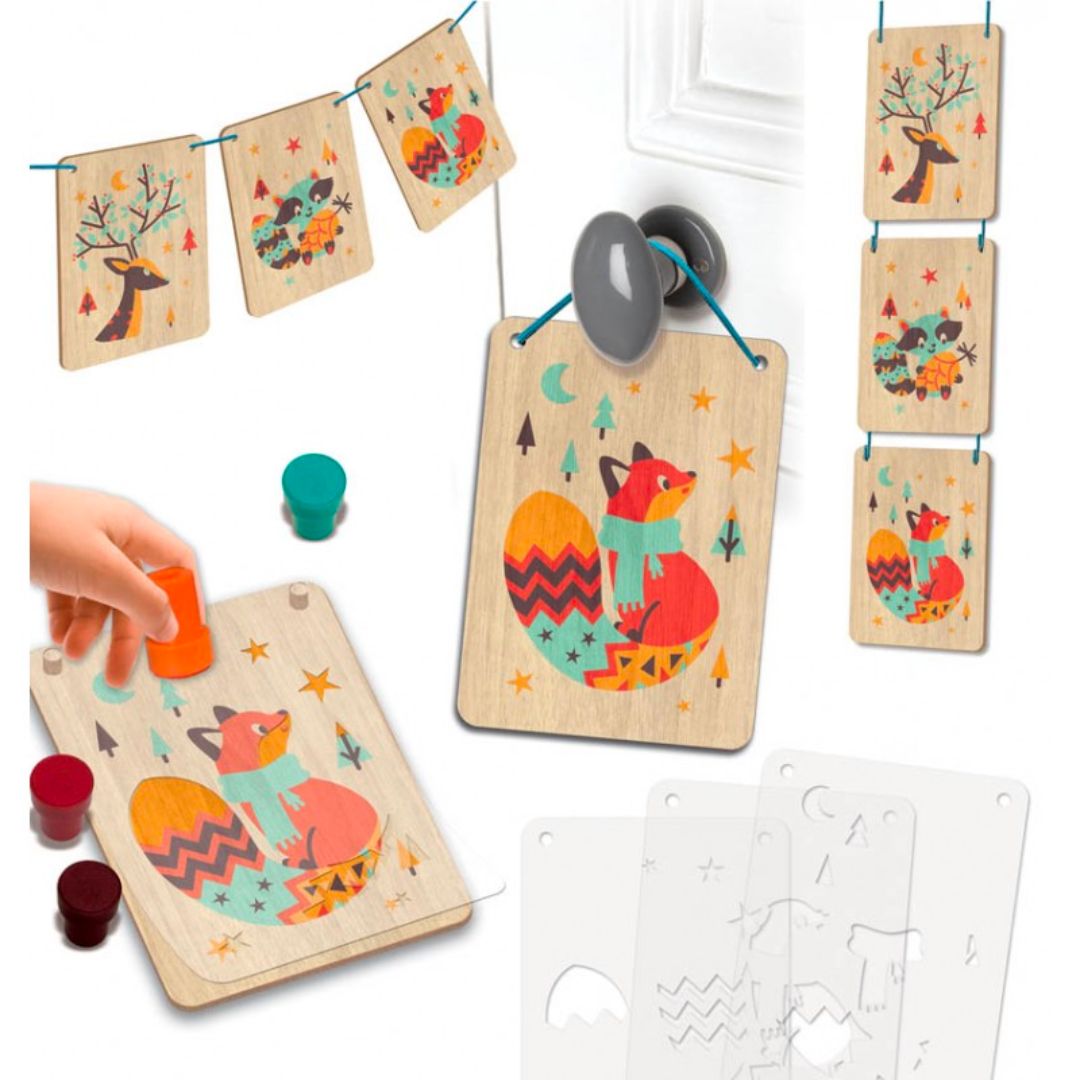 Kreativset Boxen für kleine Süßlinge, die das Zeichnen auf schönen Holzbrettern erleichtern. Dank der Schablonentechnik (eine Schablone für jede Farbe) sind die Bilder jedes Mal erfolgreich. Die in der Schachtel enthaltene Schnur ermöglicht es dann, die Bilder einzeln oder alle zusammen aufzuhängen. Thema: Waldtiere