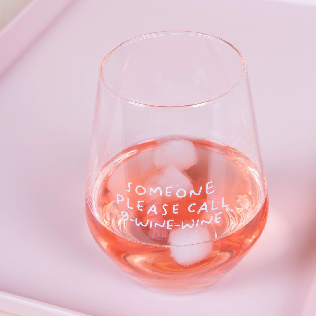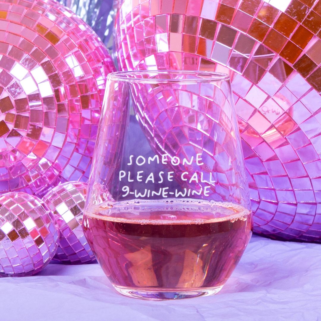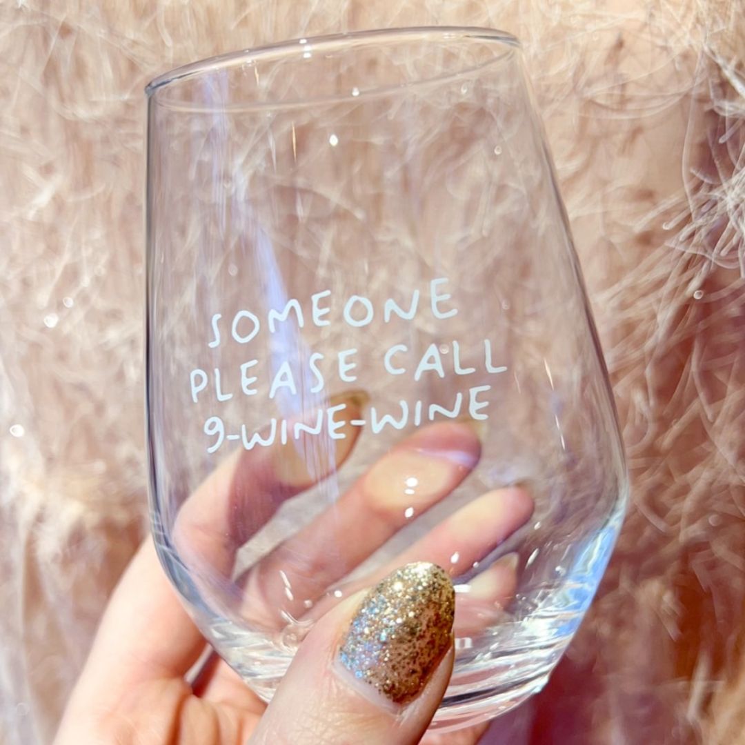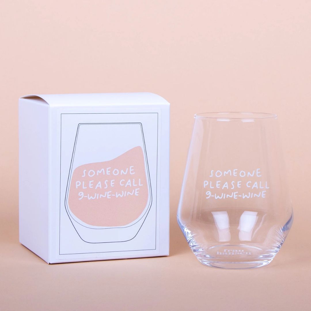 Stilvolles Weinglas 'Someone Please Call 9 Wine Wine'
