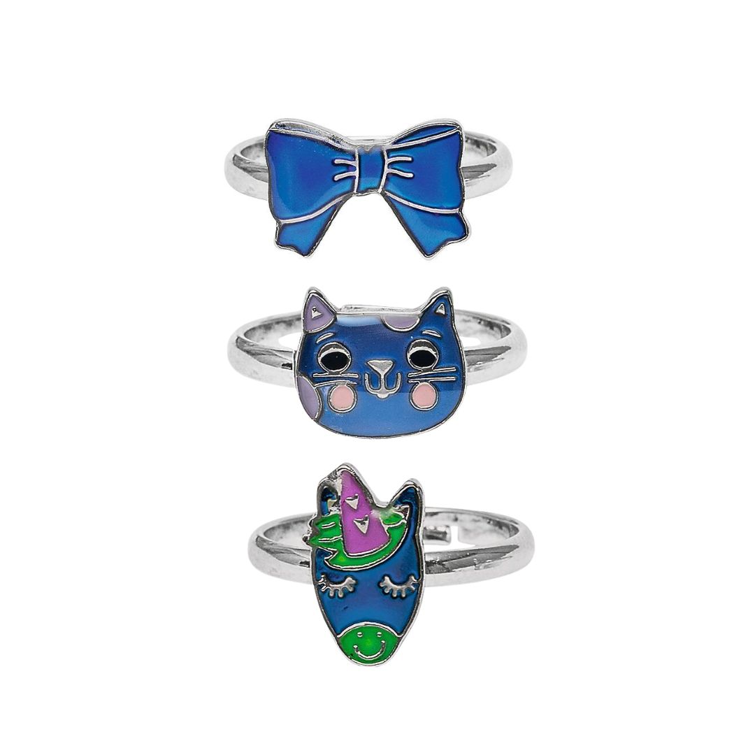 Jedes Set enthält drei liebevoll gestaltete Motive, die Kinderherzen höher schlagen lassen. Die funkelnden Steine verändern ihre Farbe je nach Temperatur und Stimmung, sodass jedes Kind seinen persönlichen Lieblingsring entdecken kann. Zusätzlich liegt jedem Set ein kleines Merkblatt bei, das die Bedeutung der einzelnen Farben erklärt – ein spielerisches Learning-Element für Kinder, das auf unterhaltsame Weise das Verständnis für Emotionen fördert.