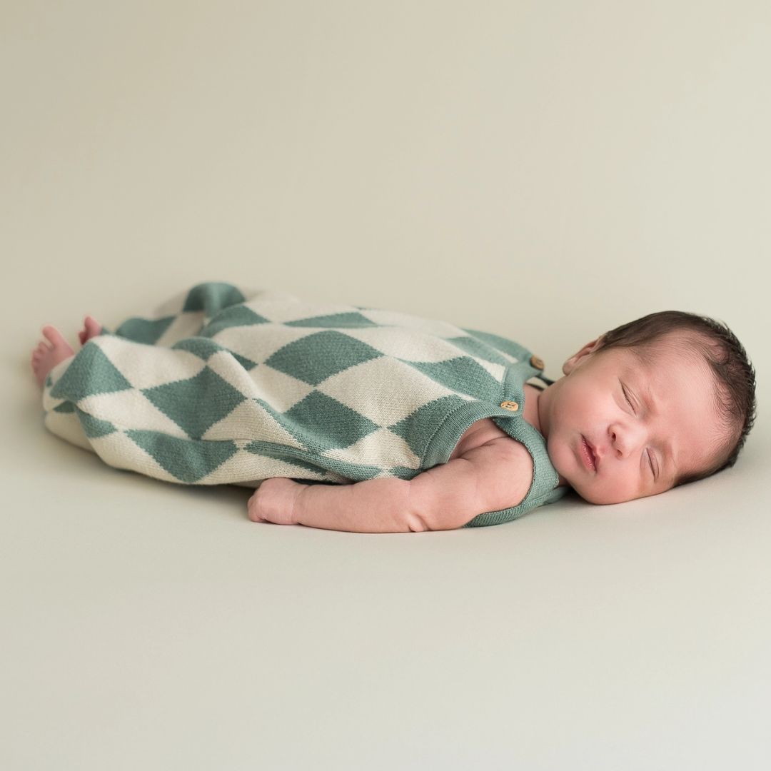 Strampler oder Overall in Jeansfarbe mit süßem Diamanten-Design blau/ecru aus 100% Bio-Baumwolle in unseren Werkstätten in Barcelona. Ideal zum Tragen mit einem Hemd oder feinem Jersey darunter. Es hat Knöpfe aus natürlichem Olivenholz an den Trägern. Sie können es mit unseren Hüten in Jeansfarbe kombinieren. In kaltem Wasser waschen und nicht im Trockner trocknen. Hergestellt in Spanien