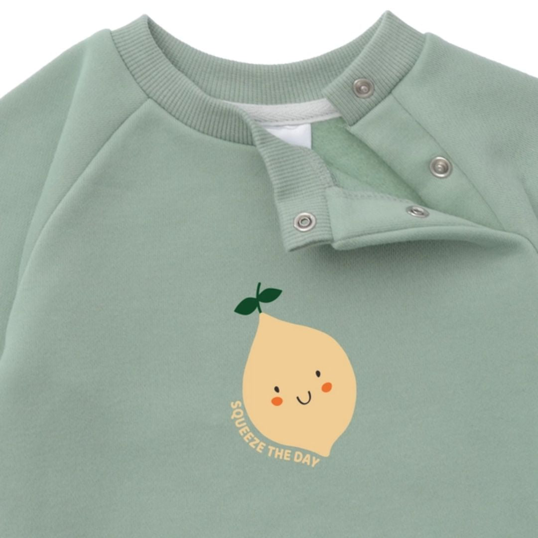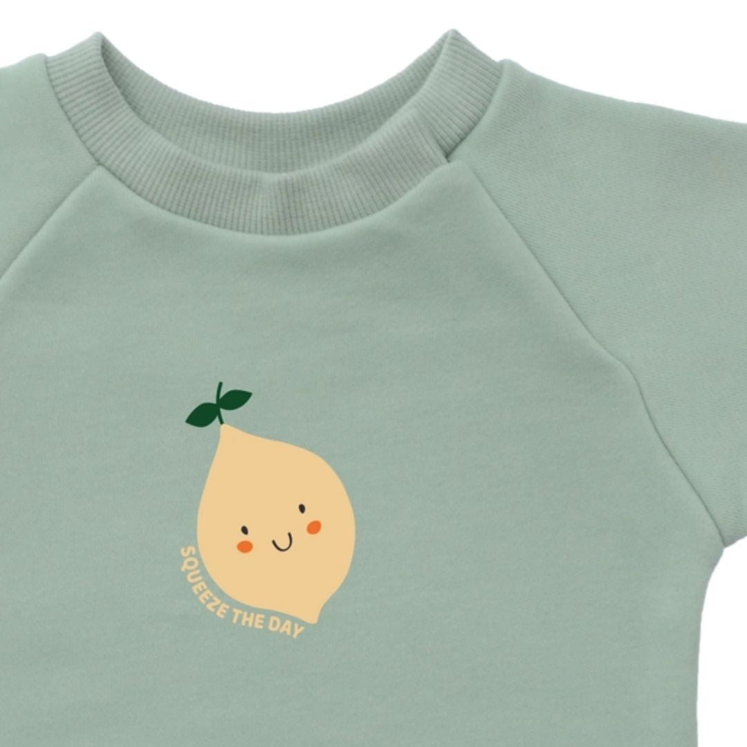 Angenehm weiches Baby- und Kleinkinder-Sweatshirt von Liliput – Fröhlich und komfortabel in Schilfgrün mit Zitronen-Aufdruck