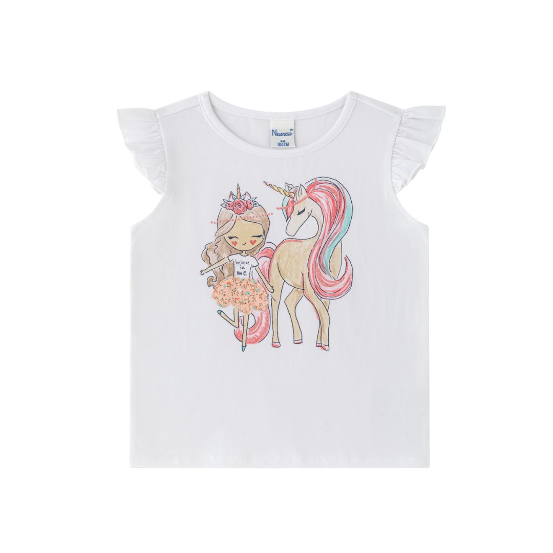 Das Einhornmotiv und die glitzernden Details inspirieren zu fantasievollen Outfits. Kombiniere das Shirt mit einem Tüllrock und funkelnden Accessoires für einen besonders magischen Look, der kleine Prinzessinnen verzaubert.