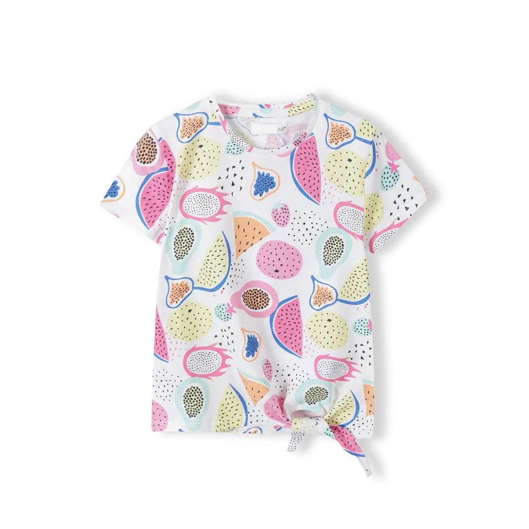 Ein süßes und stylisches T-Shirt, das du diesen Sommer gerne tragen wird. Aus superweichem, leichtem Stoff gefertigt, ist es mit kurzen Ärmeln gestaltet und mit bunten und lustigen Grafikdrucken verziert und mit einem süßen Knoten am Saum vorne abgeschlossen.