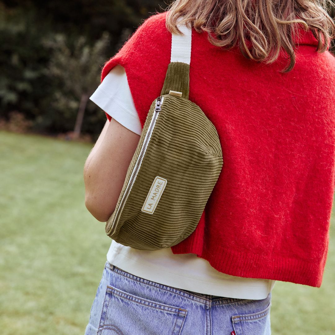 Teen/Damen Bauchtasche in Cordoptik olive personalisierbar