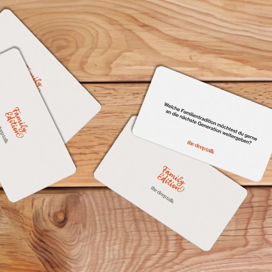 Ob beim gemütlichen Abendessen, an Feiertagen oder während eines Wochenendausflugs – „The Deep Talk Family Edition“ bringt frischen Wind in eure gemeinsame Zeit.