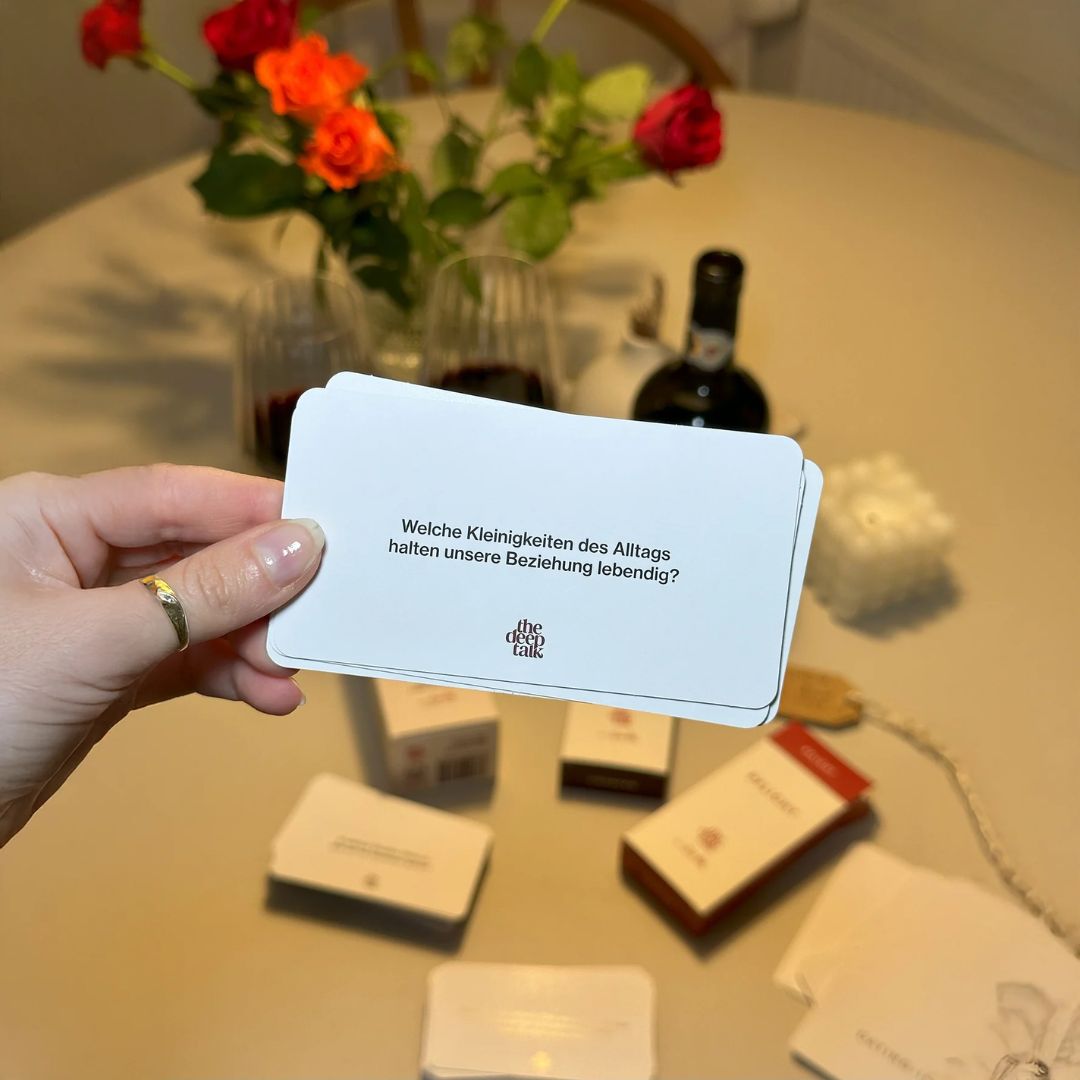 - Fördert die Intimität: Neben emotionalen Themen regen die Karten auch dazu an, eure körperliche Nähe und Vertrautheit zu stärken.