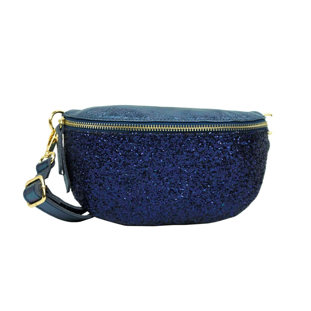 Trendige Gürteltasche aus Leder mit Pailletten mitternachtsblau