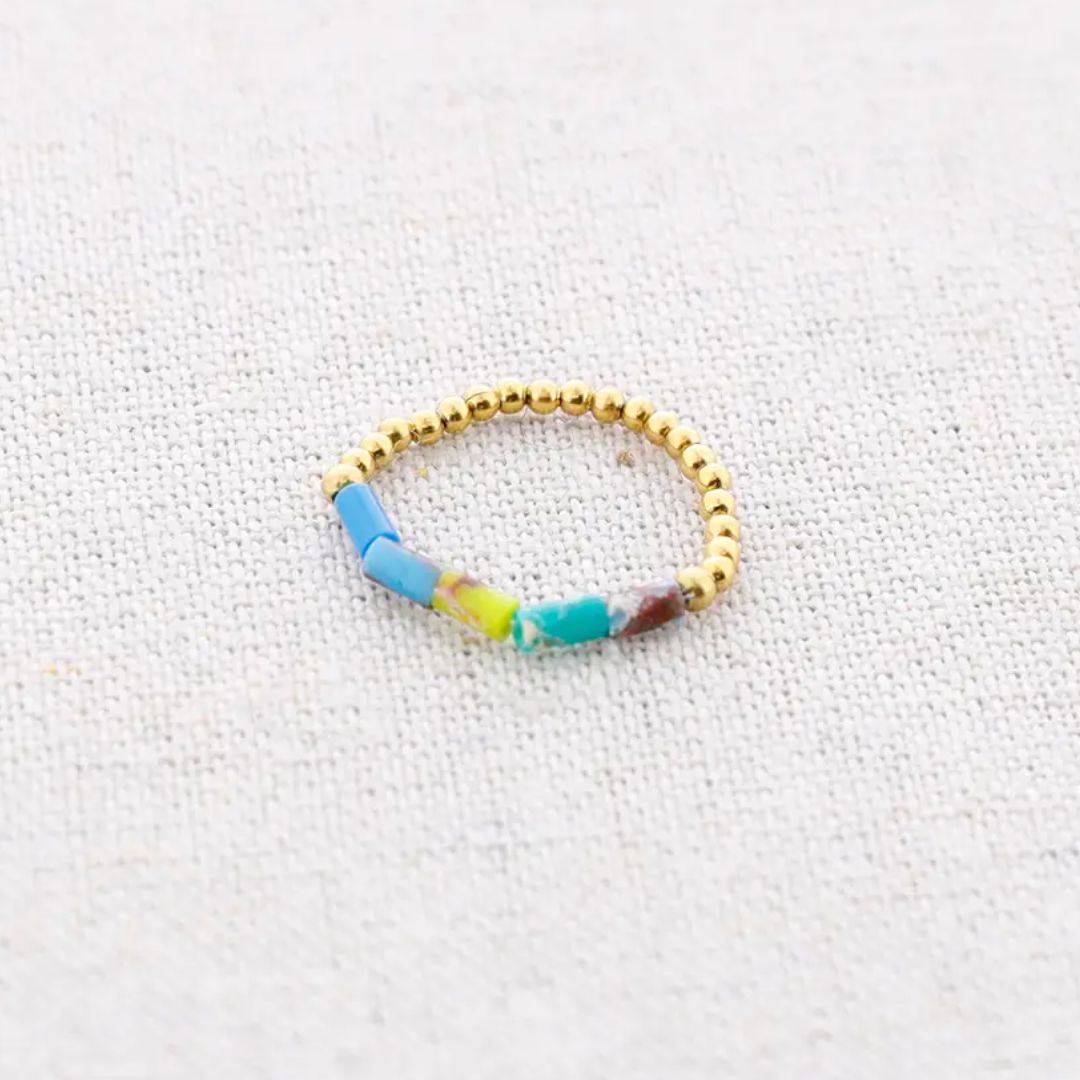 Damen Ring elastisch mit Tube Steinen gold/aqua