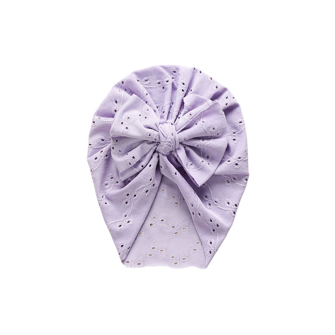 Süßer Turban für Baby Mädchen in Purple mit Lochstickerei und großer Schleife – Stilvoller Komfort für die Kleinsten