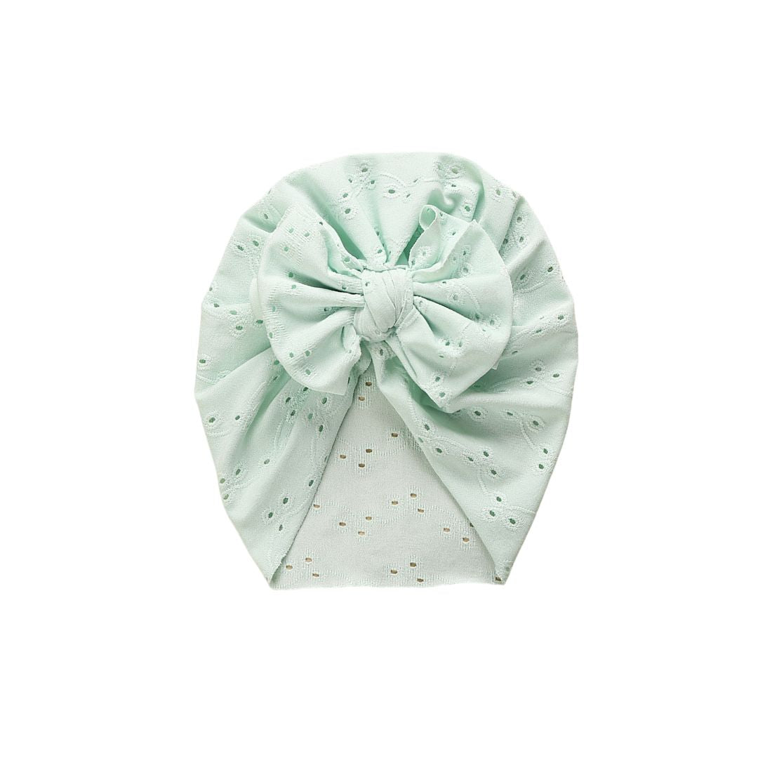 Süßer Turban für Baby Mädchen in Grün mit Lochstickerei und großer Schleife – Stilvoller Komfort für die Kleinsten