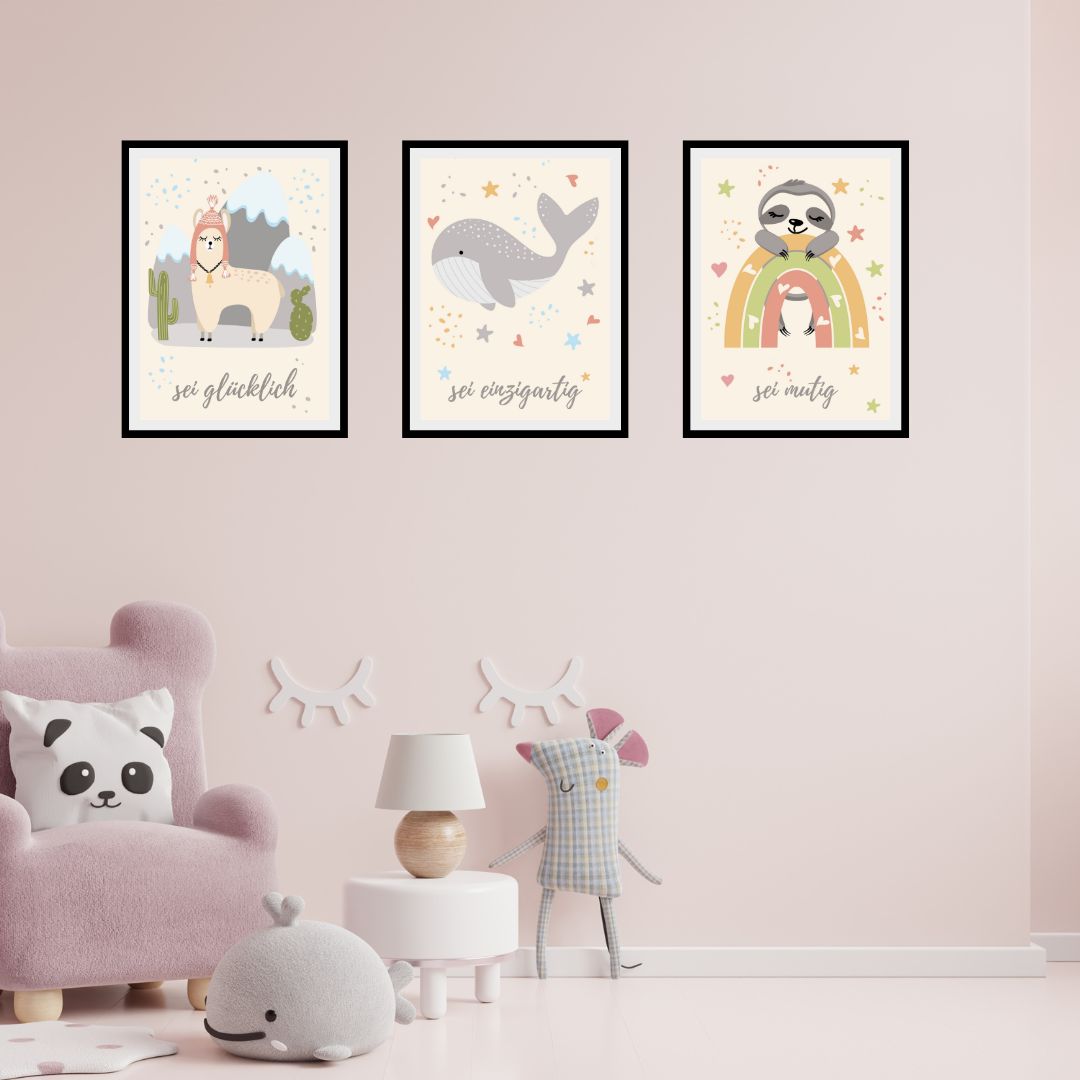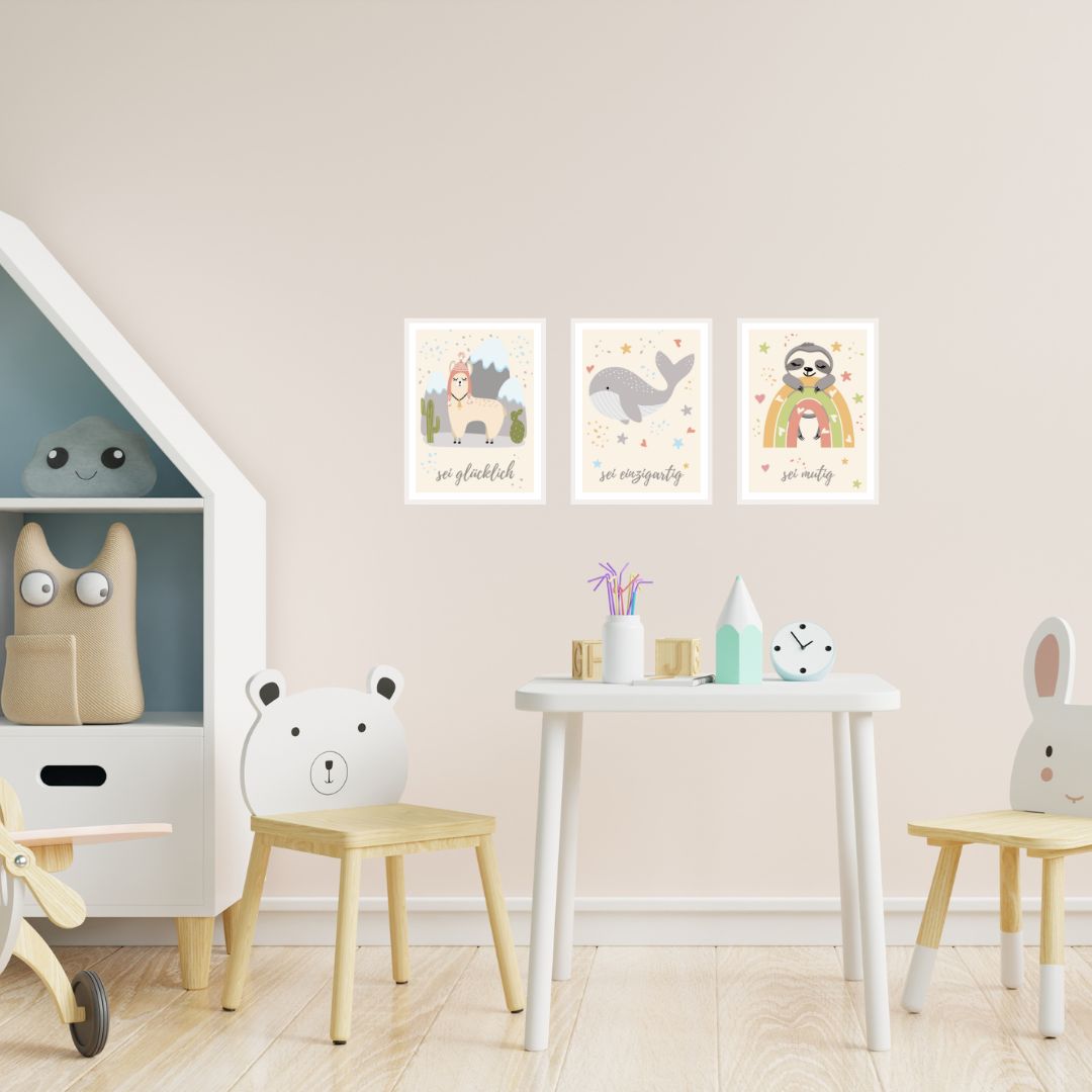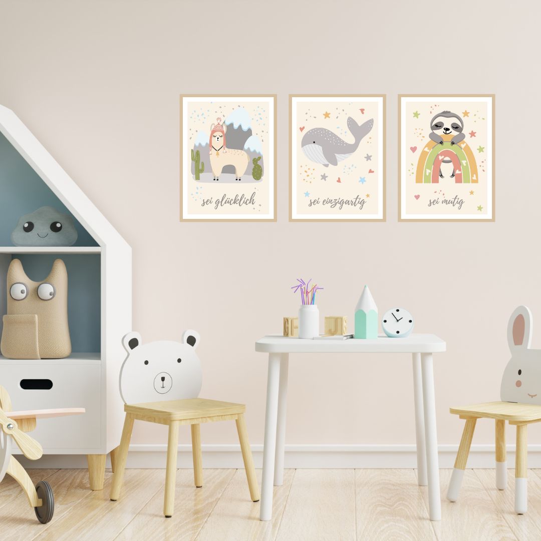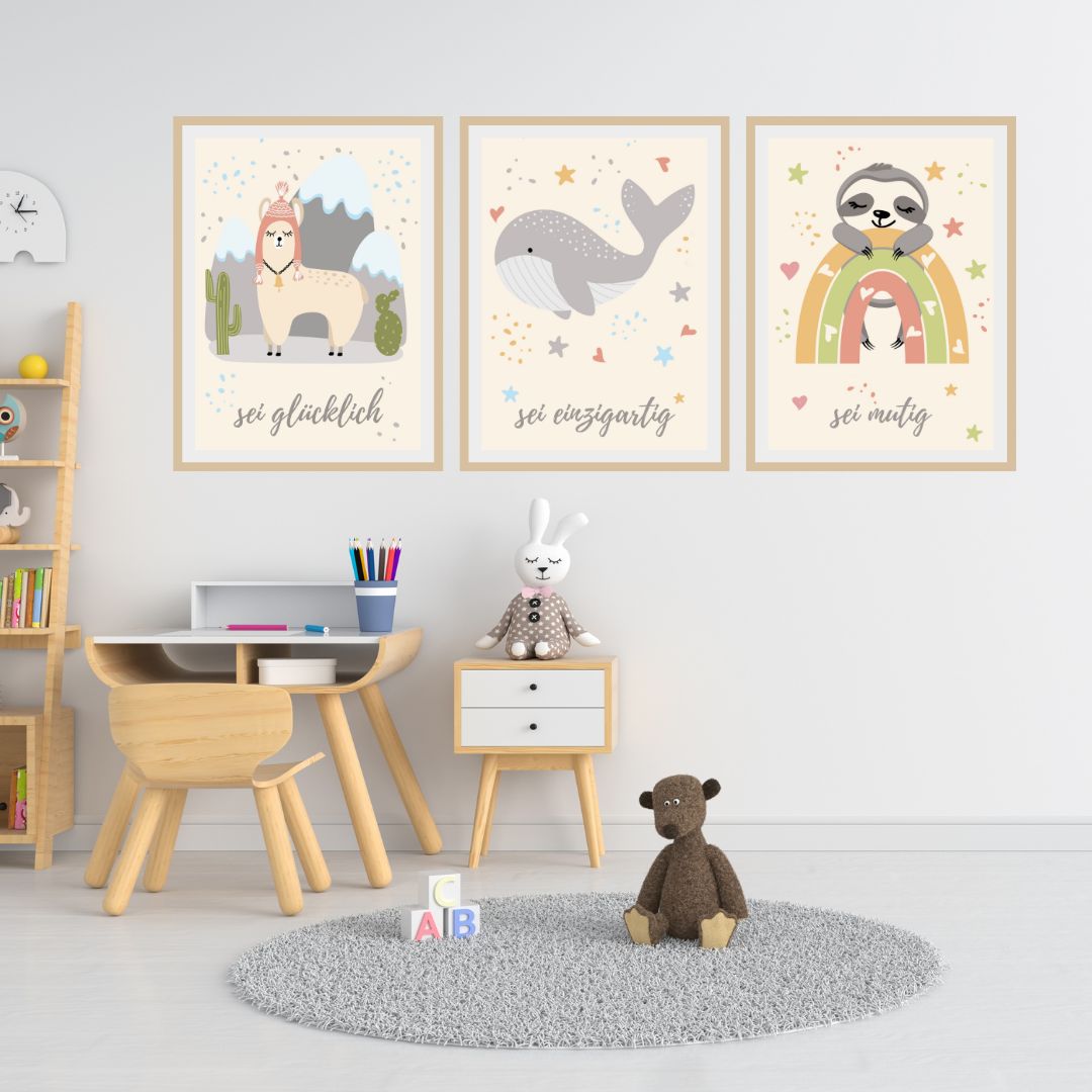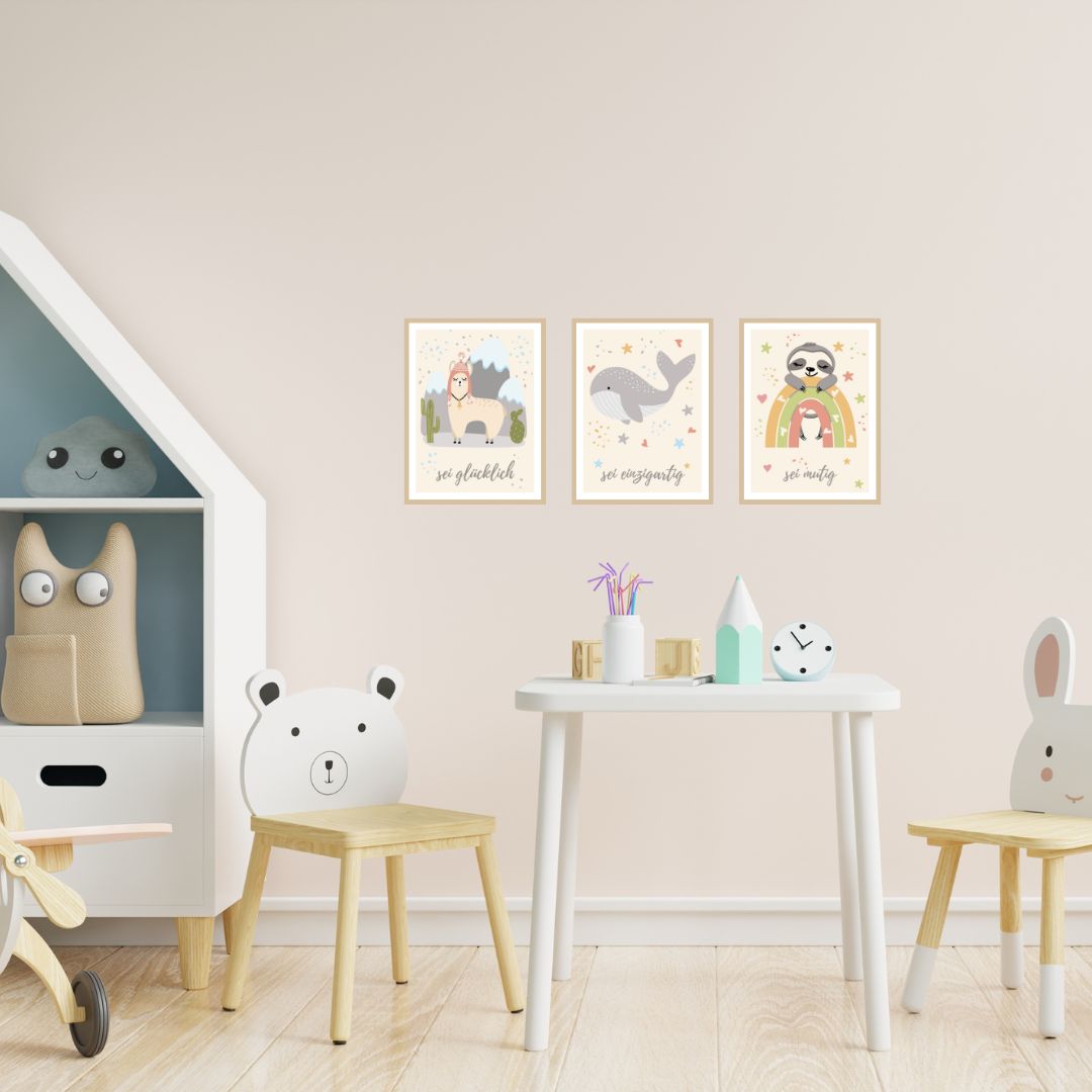 - Kinderzimmer Wandbilder gerahmt 3er Set