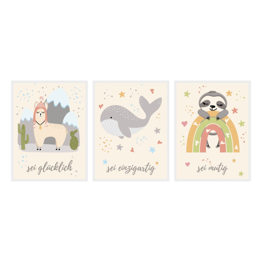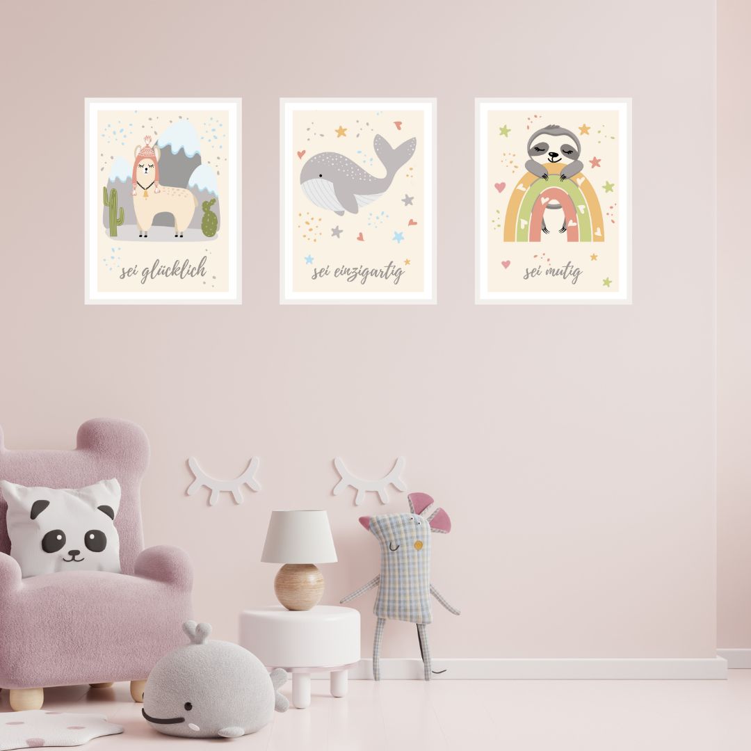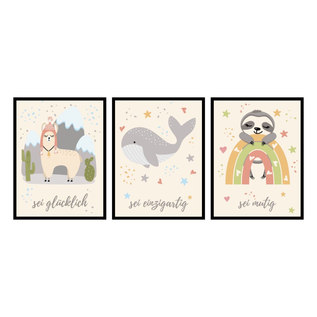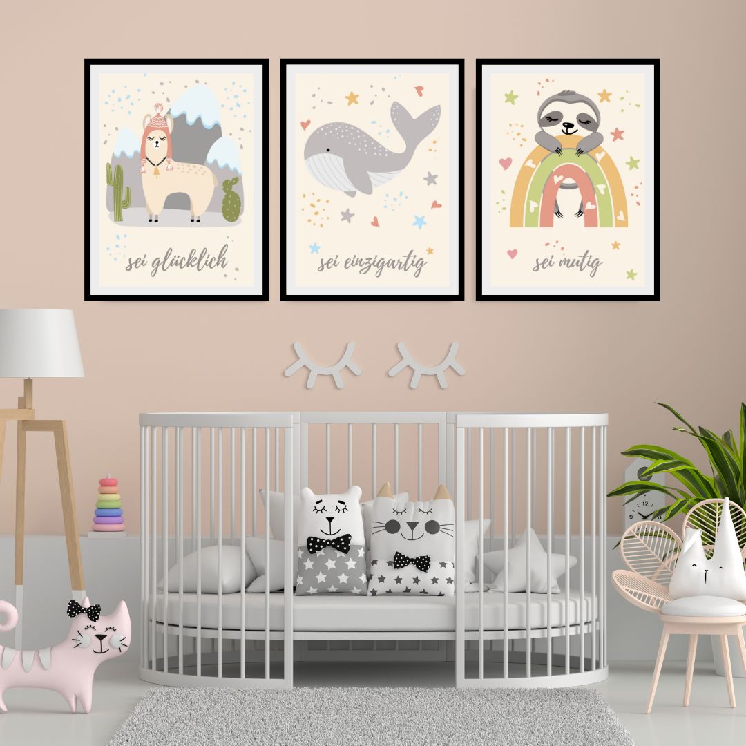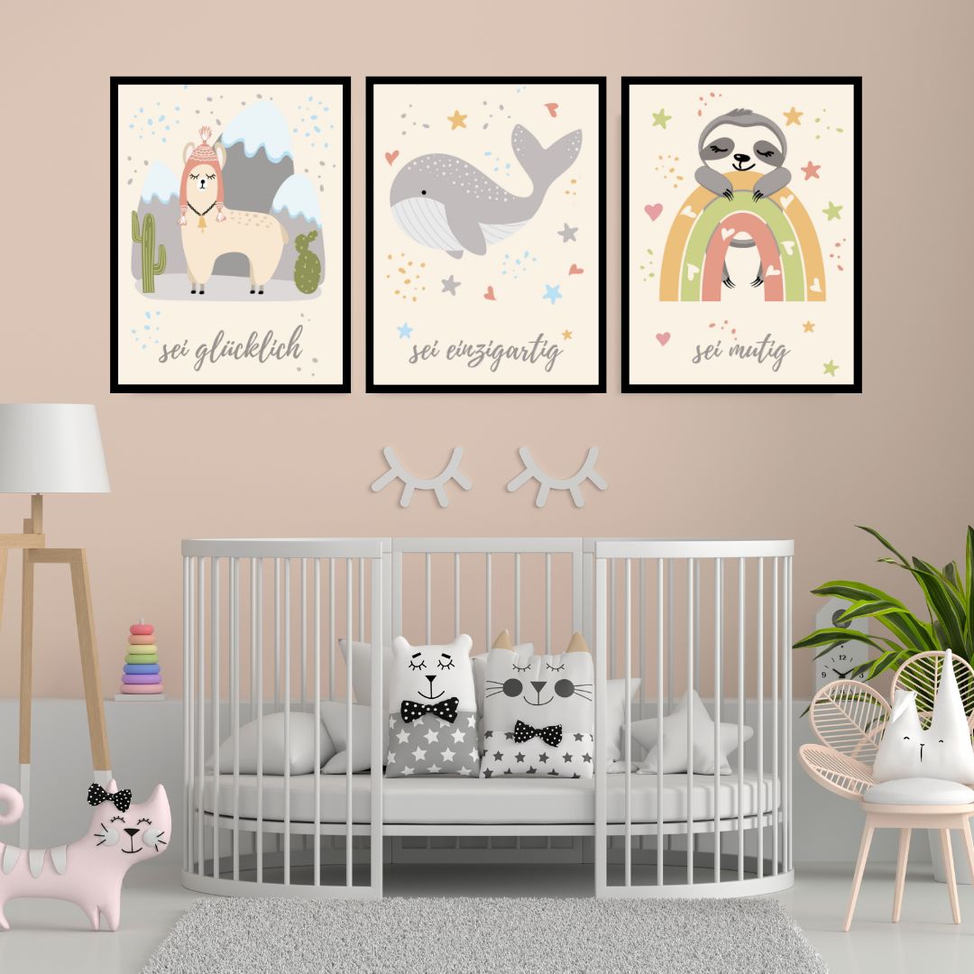 - Kinderzimmer Wandbilder gerahmt 3er Set