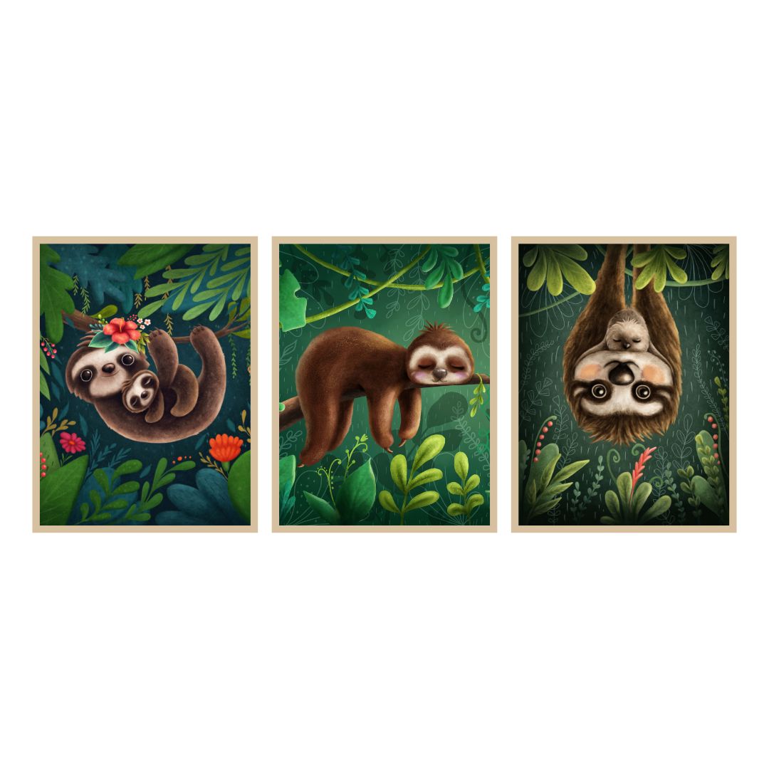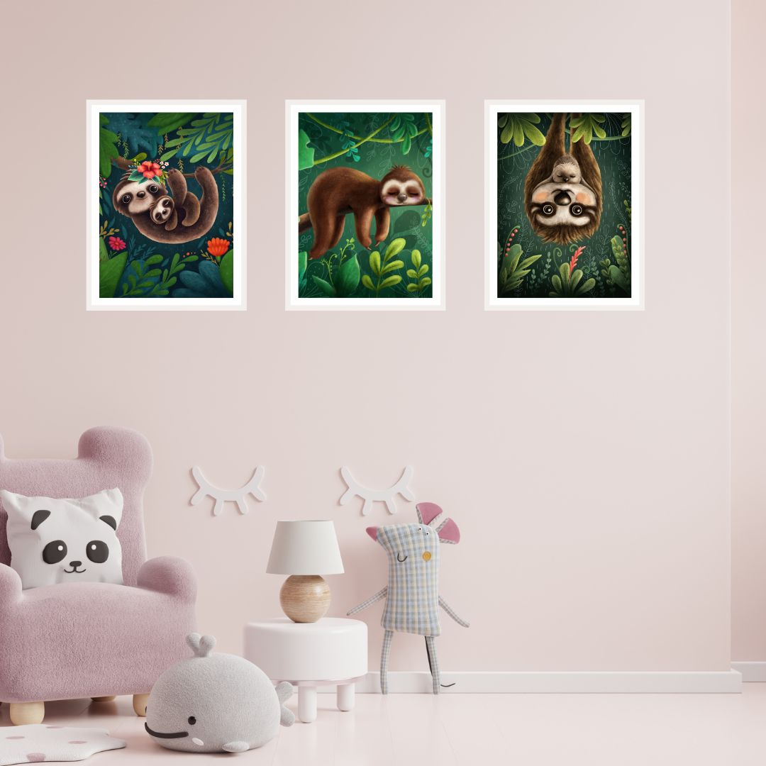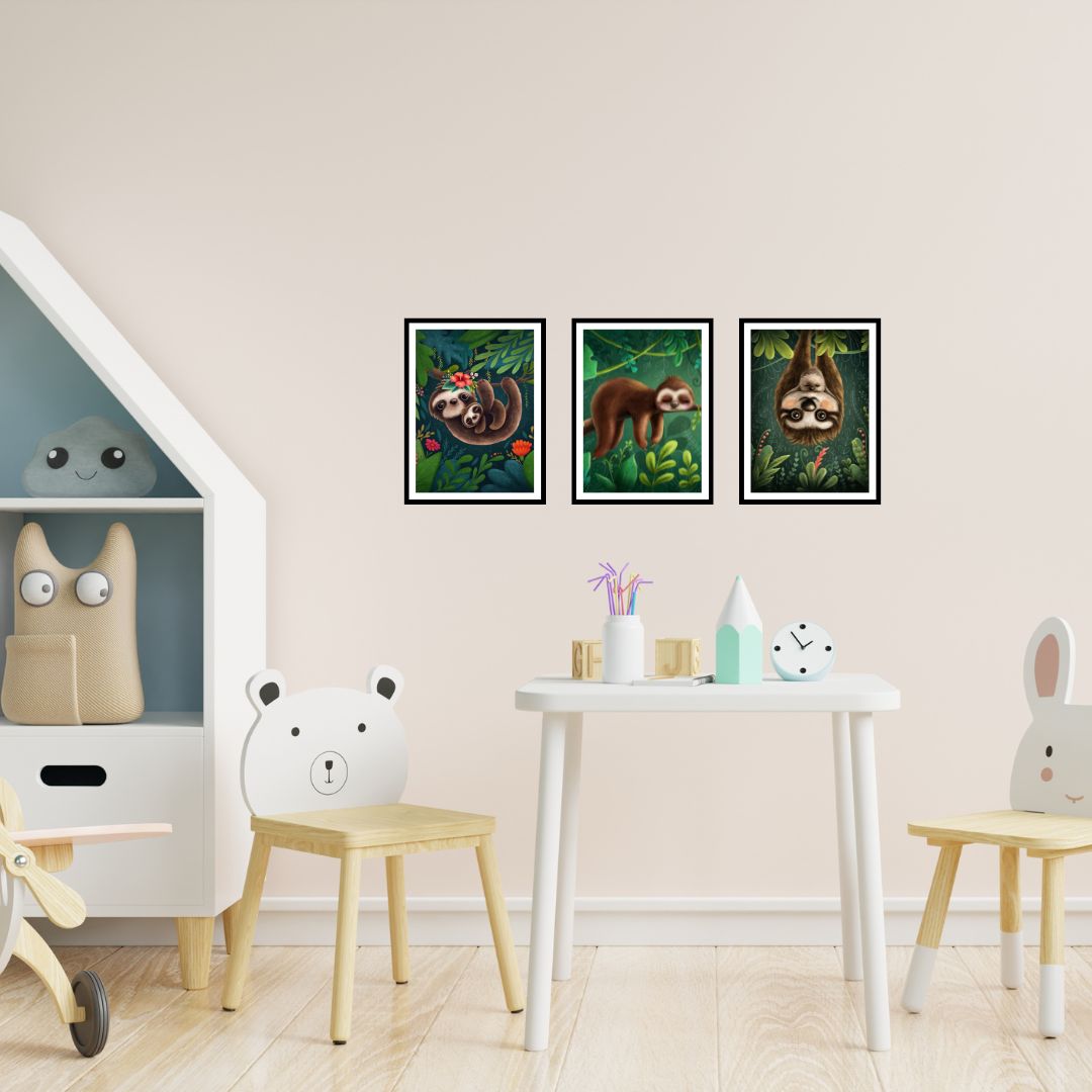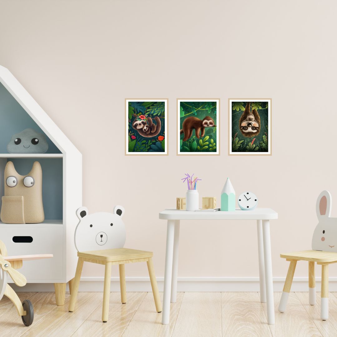 Wandbilder gerahmt 3er Set "Faultier Familie"