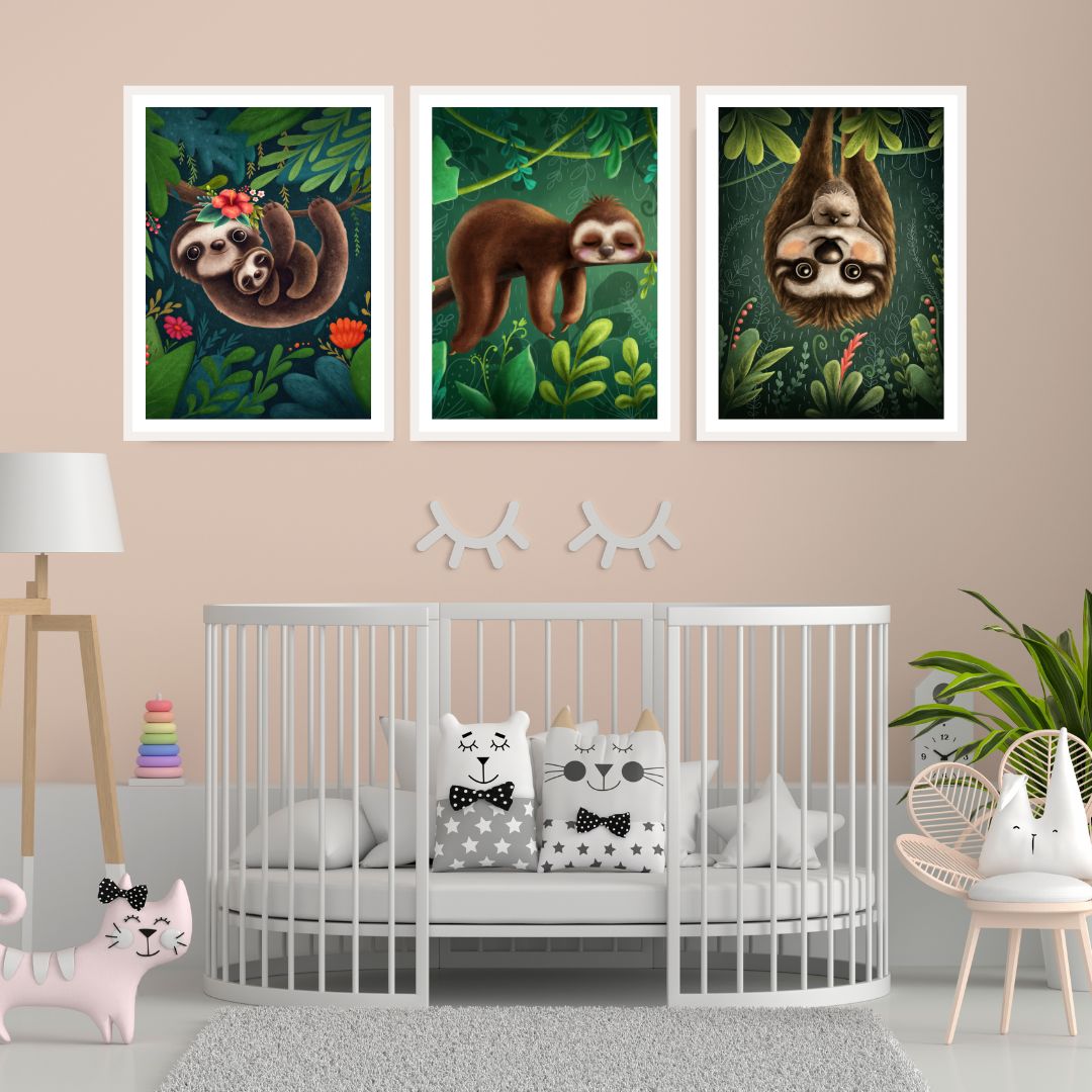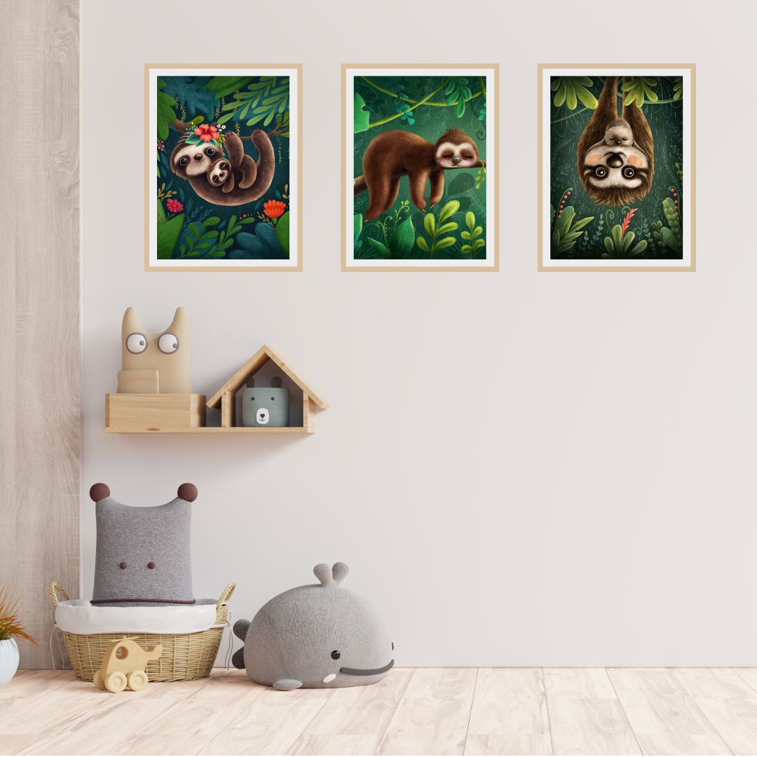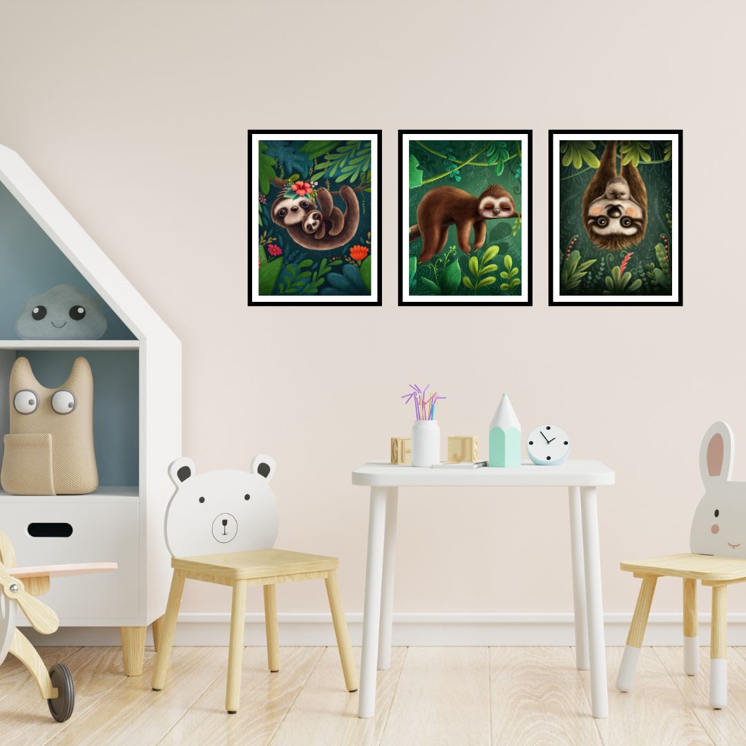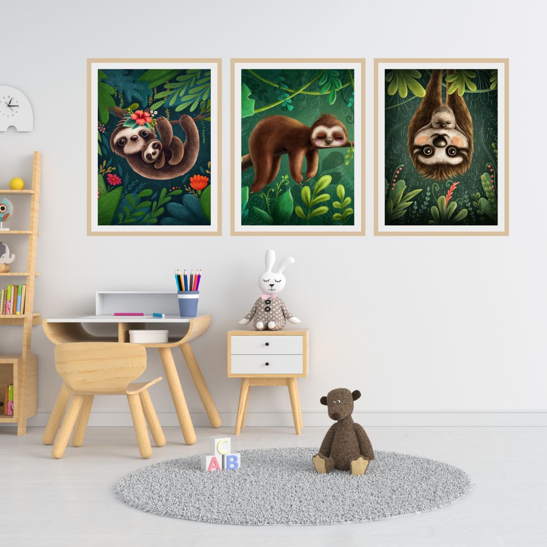 Wandbilder gerahmt 3er Set "Faultier Familie"