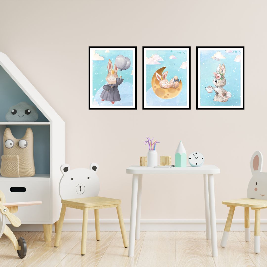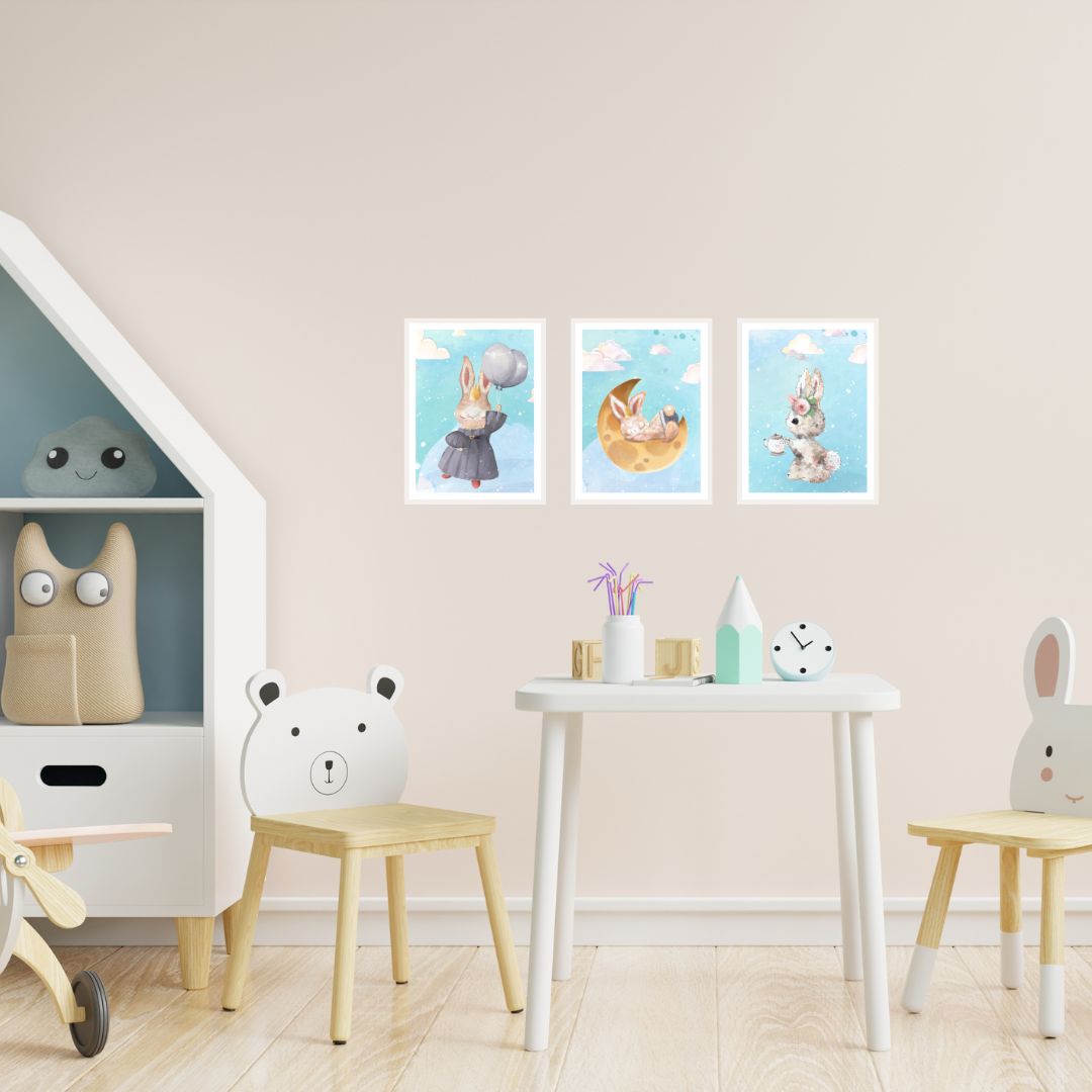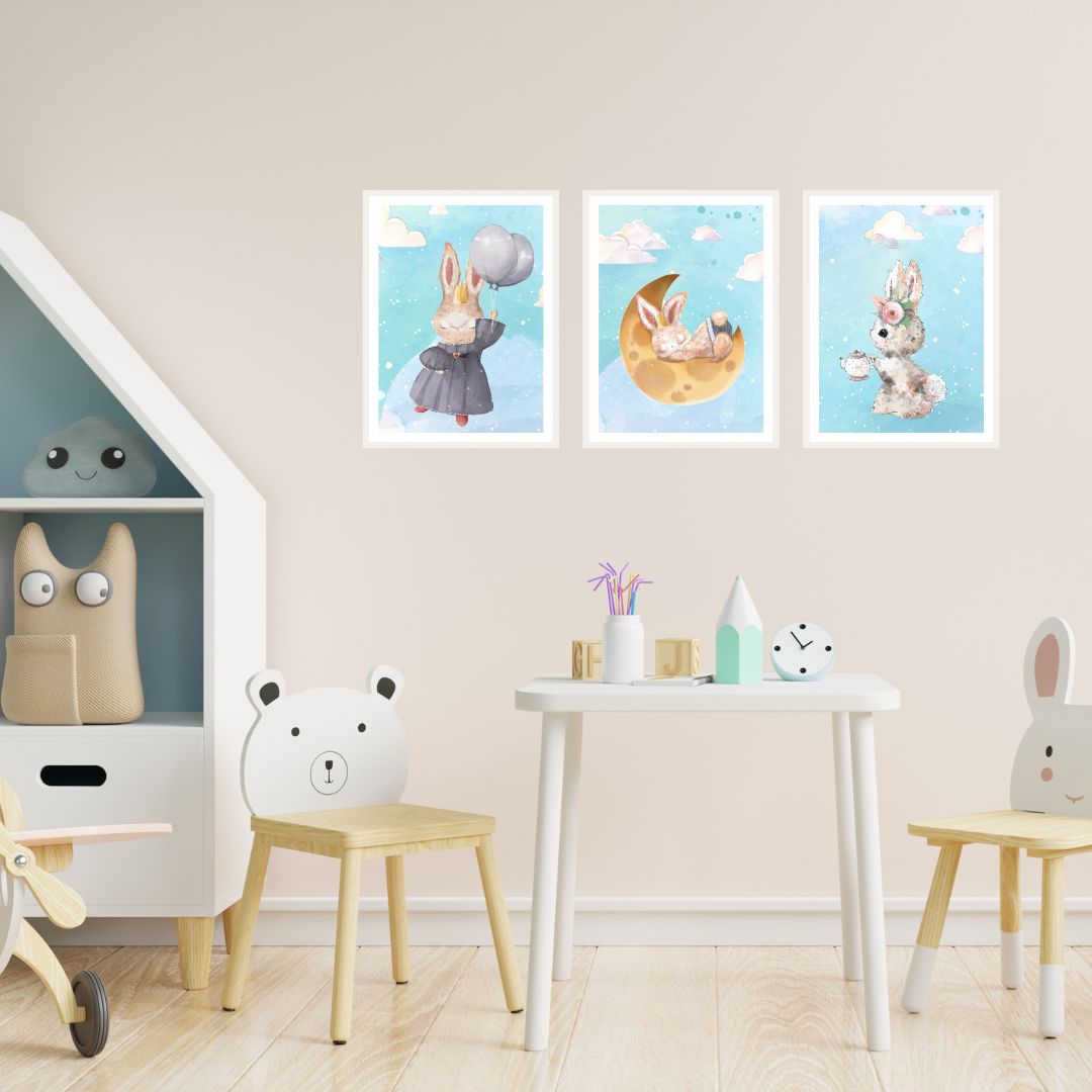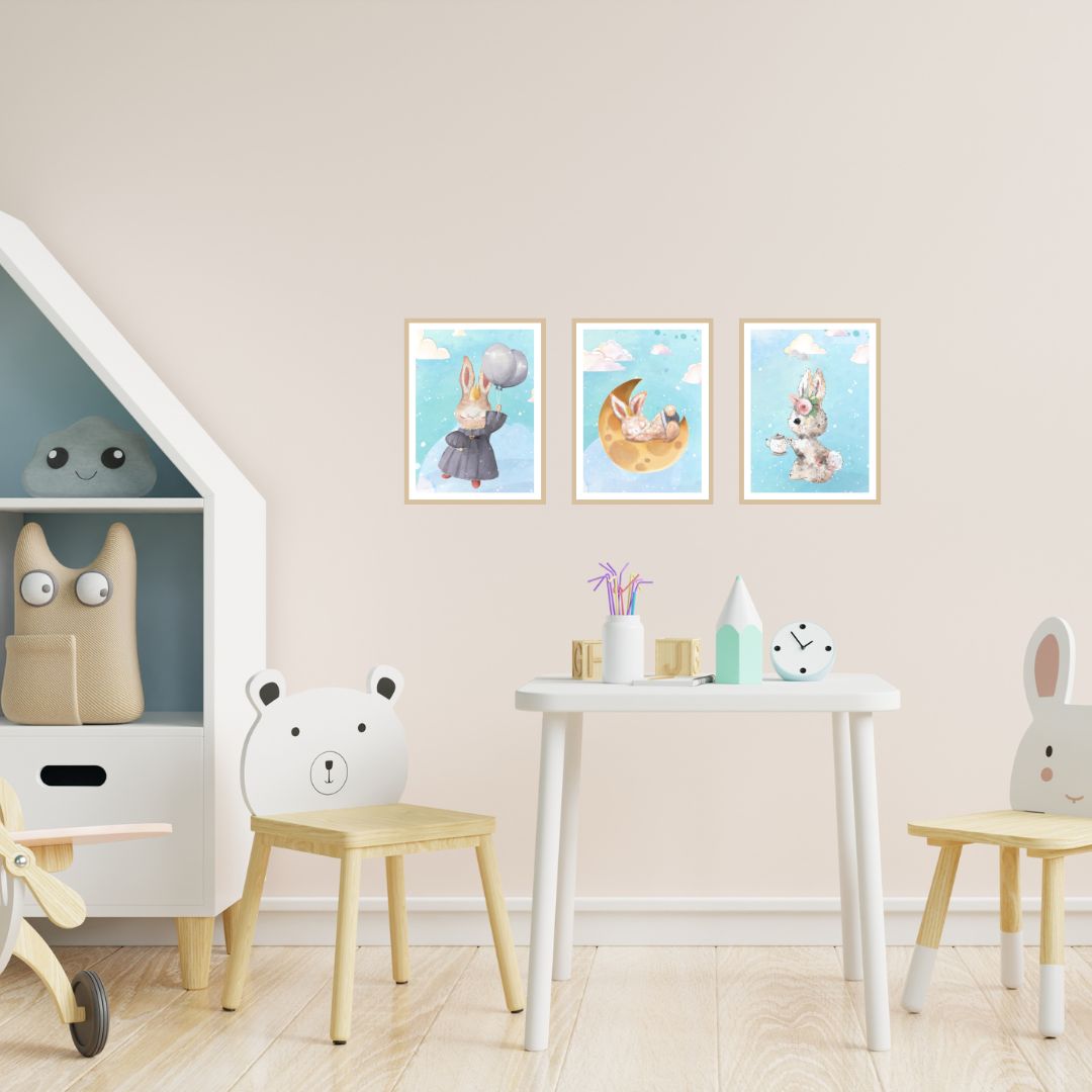 - Kinderzimmer Wandbilder gerahmt 3er Set