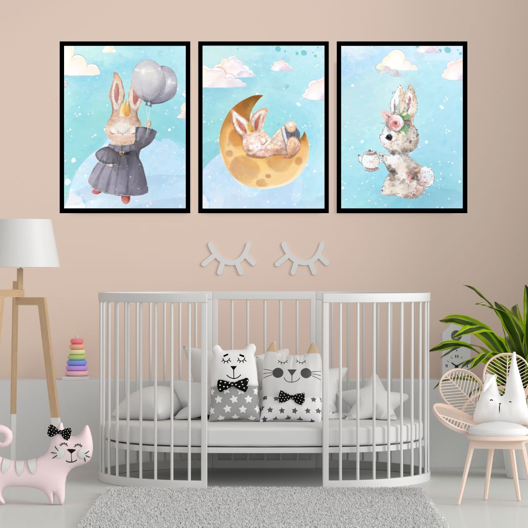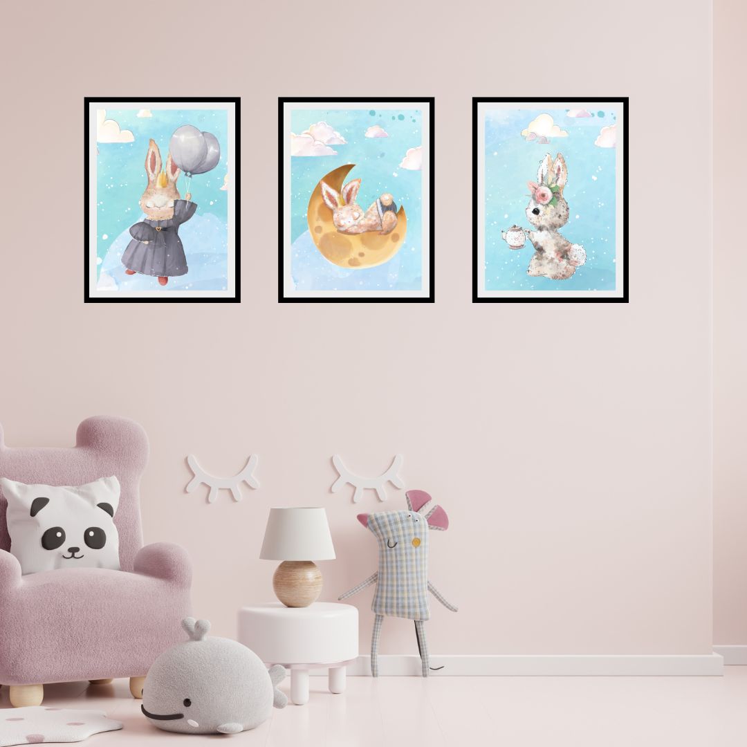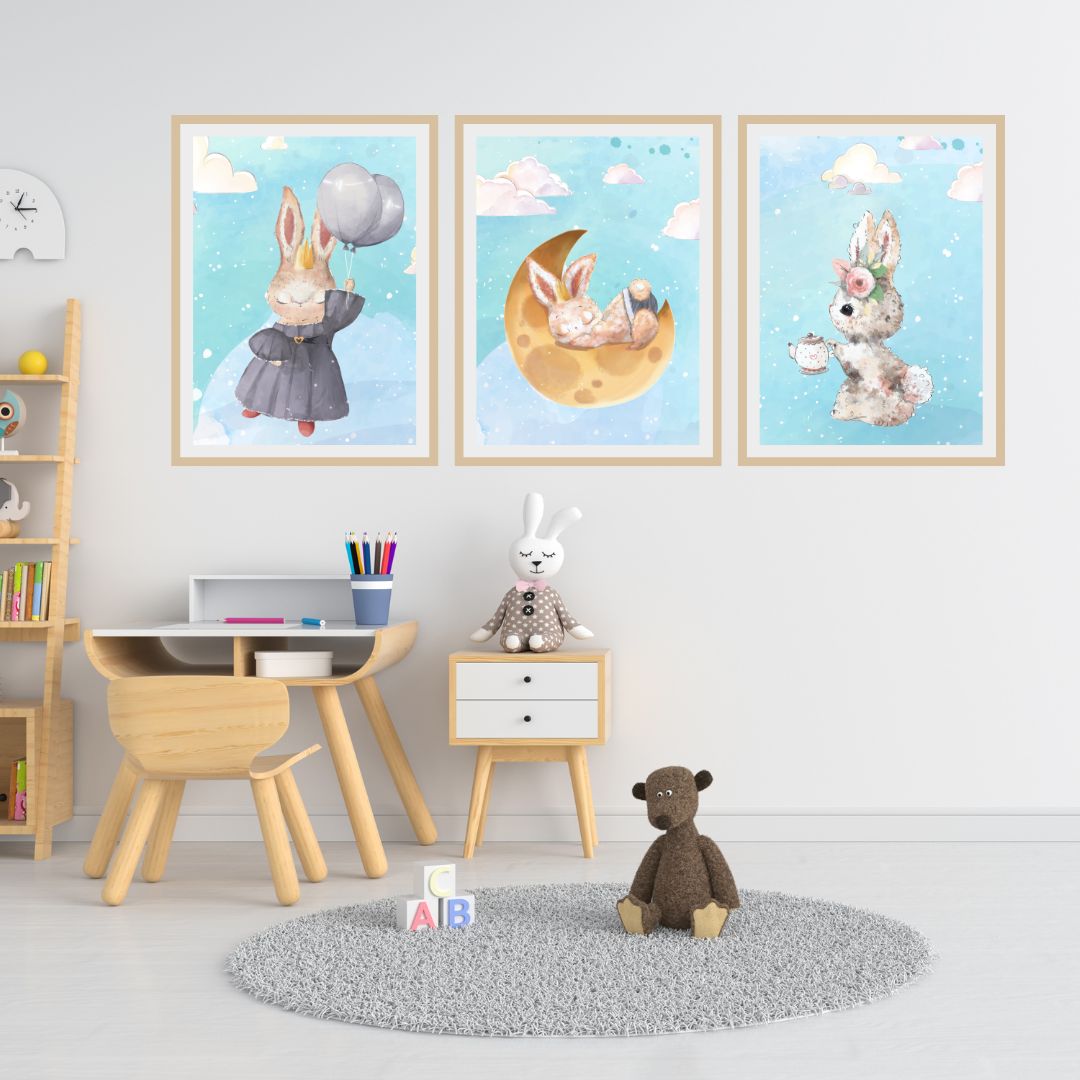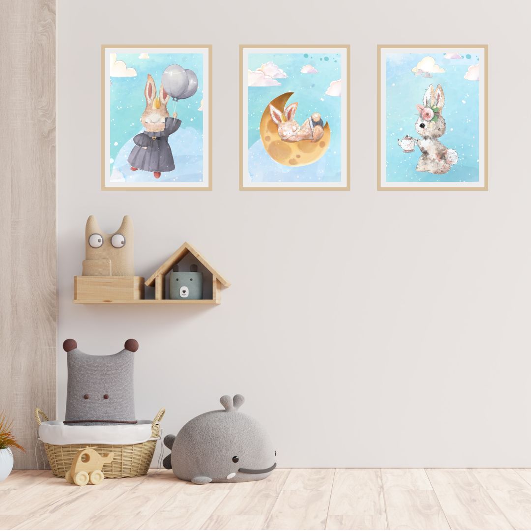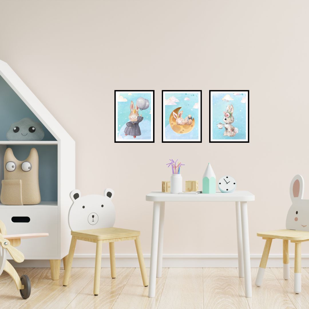 - Kinderzimmer Wandbilder gerahmt 3er Set