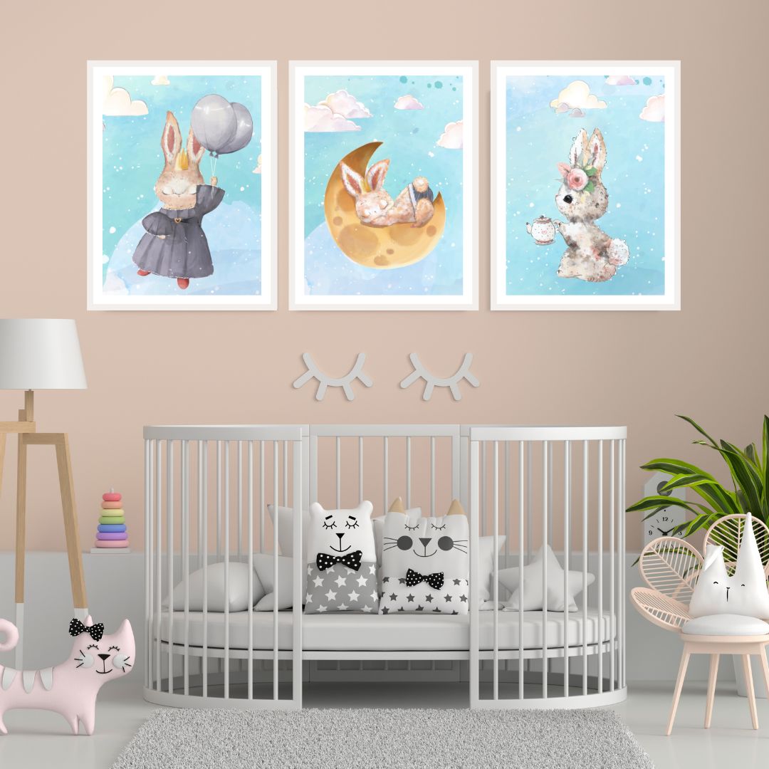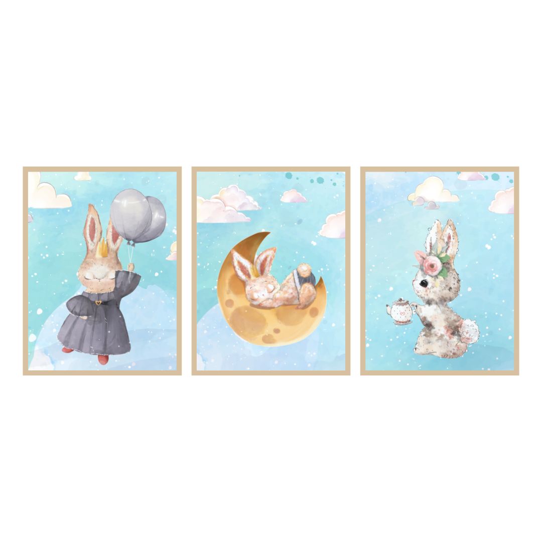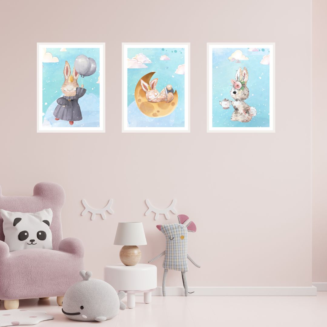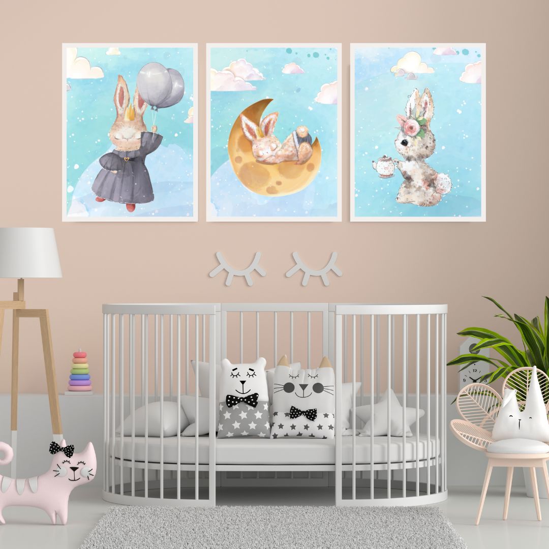 - Kinderzimmer Wandbilder gerahmt 3er Set