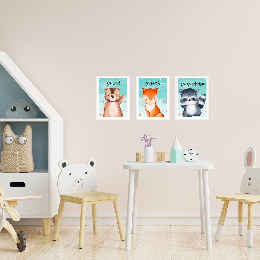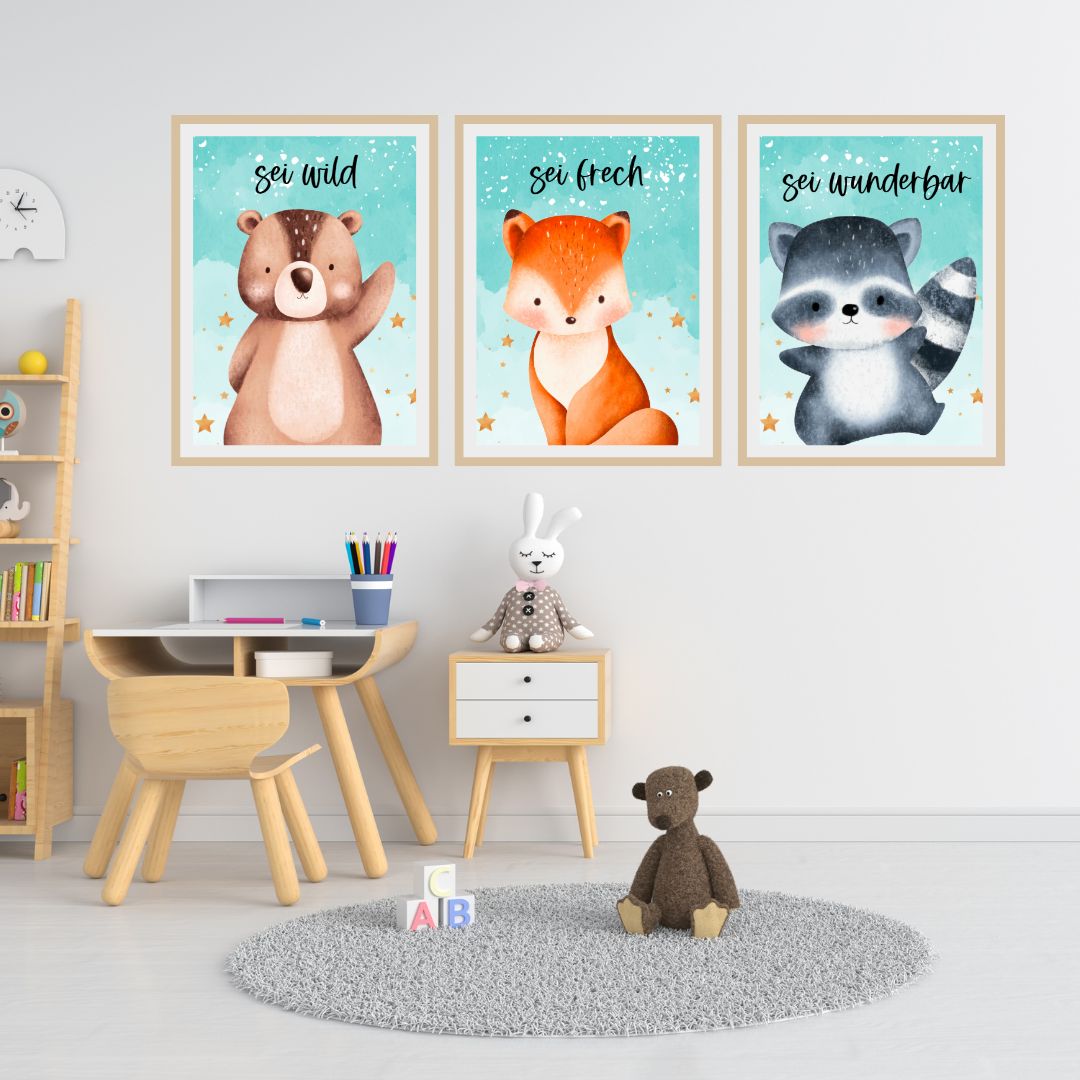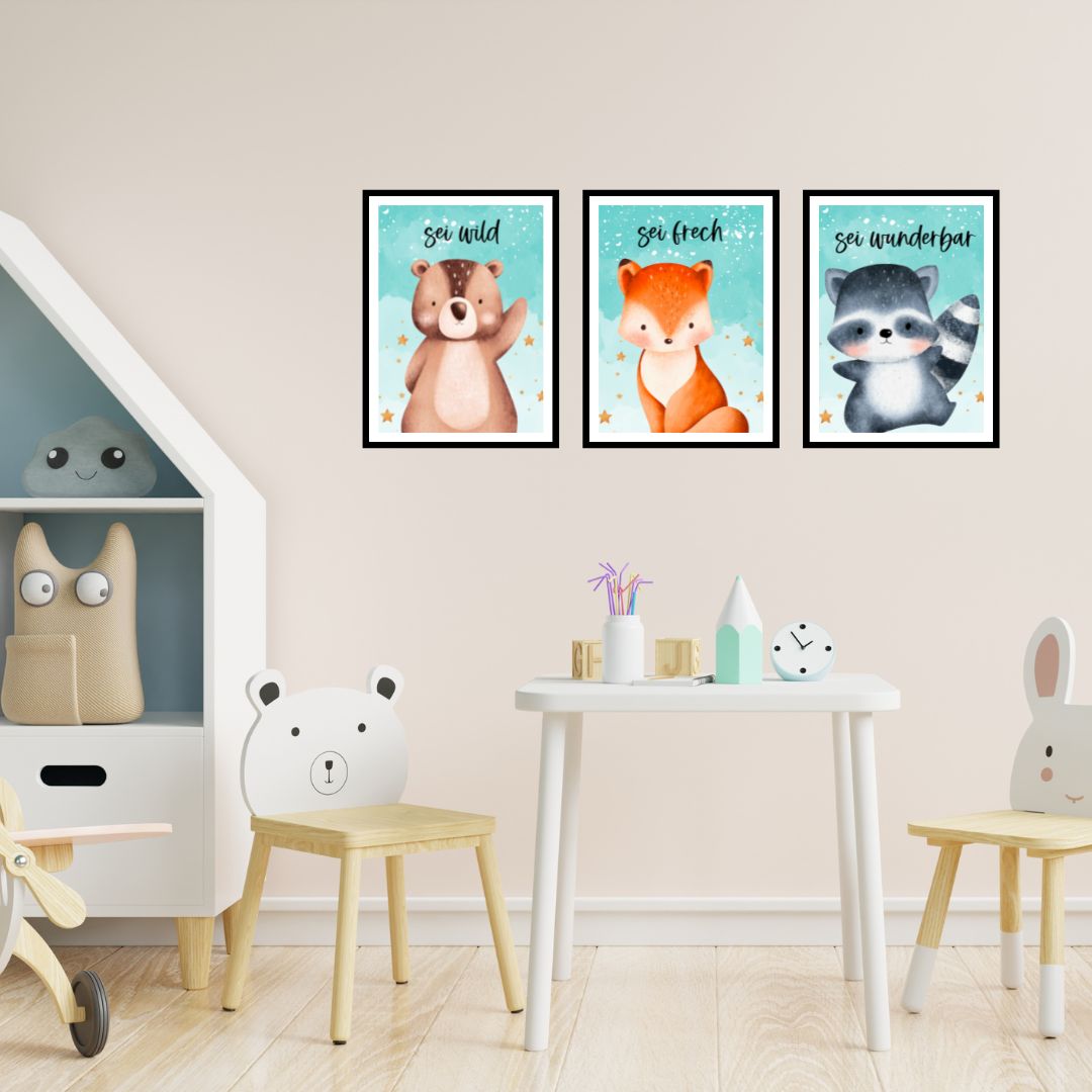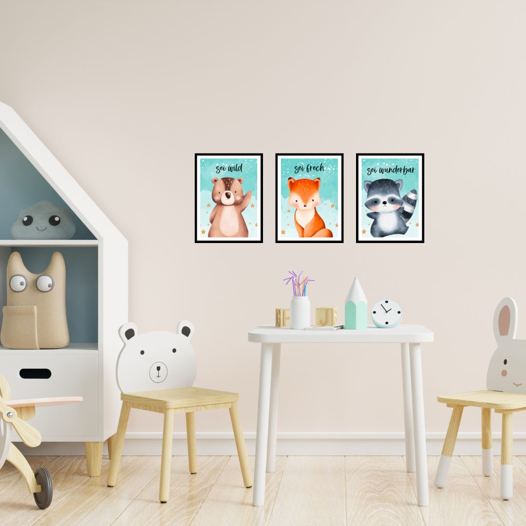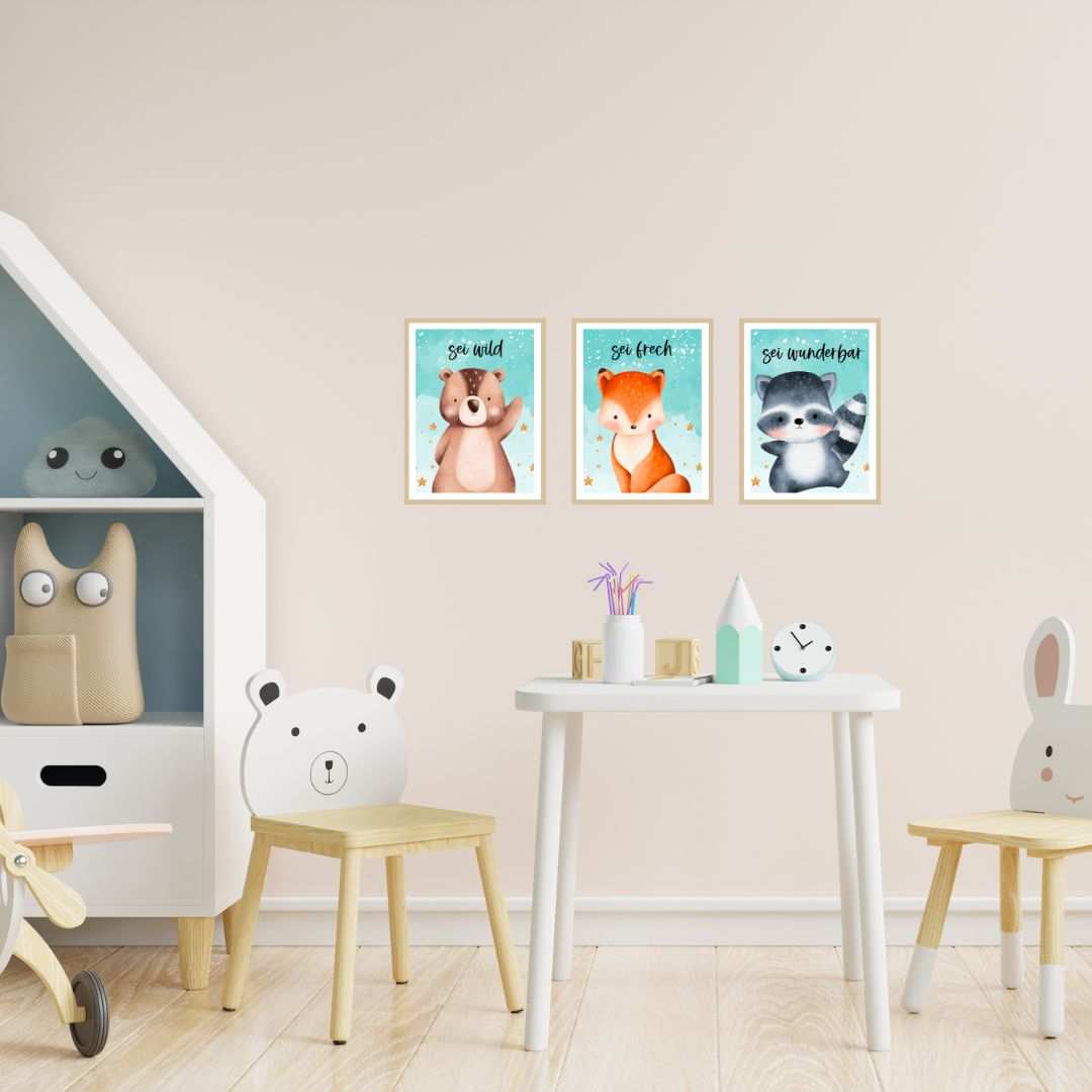 - Kinderzimmer Wandbilder 3er Set gerahmt