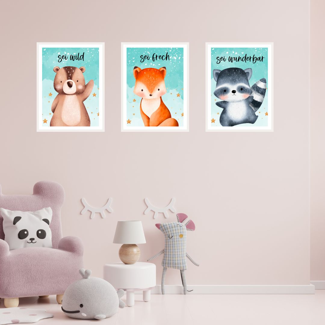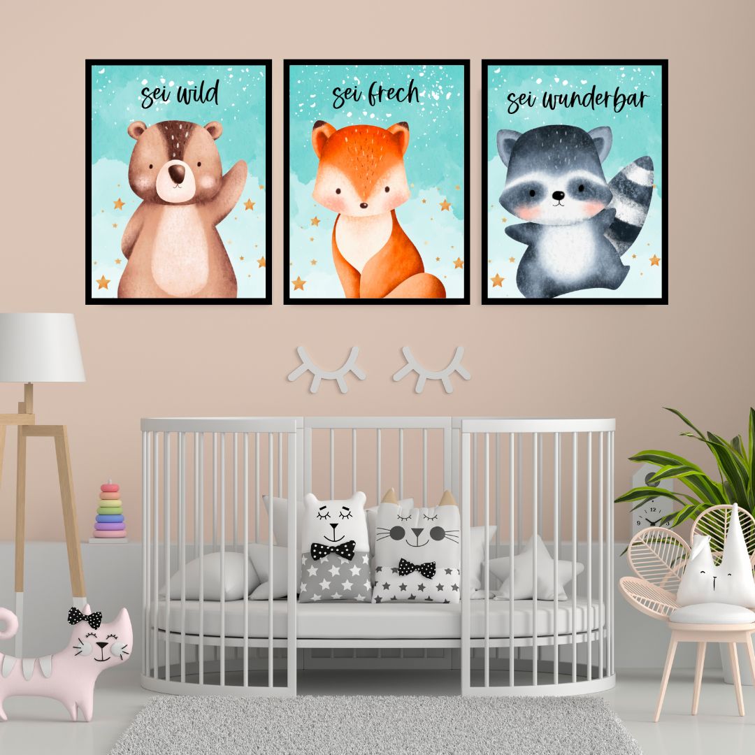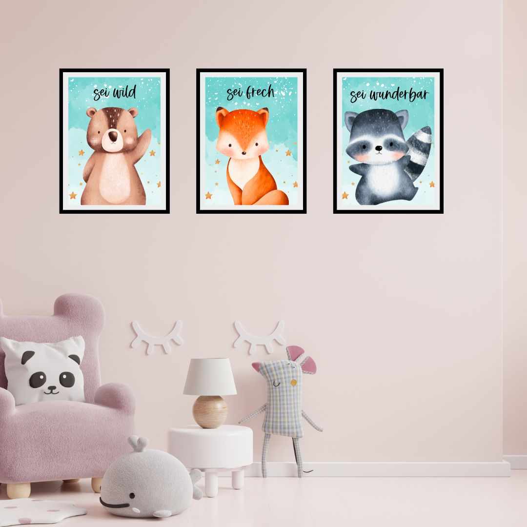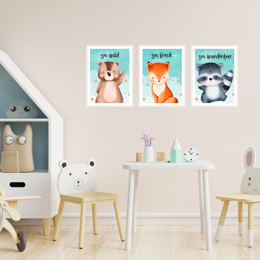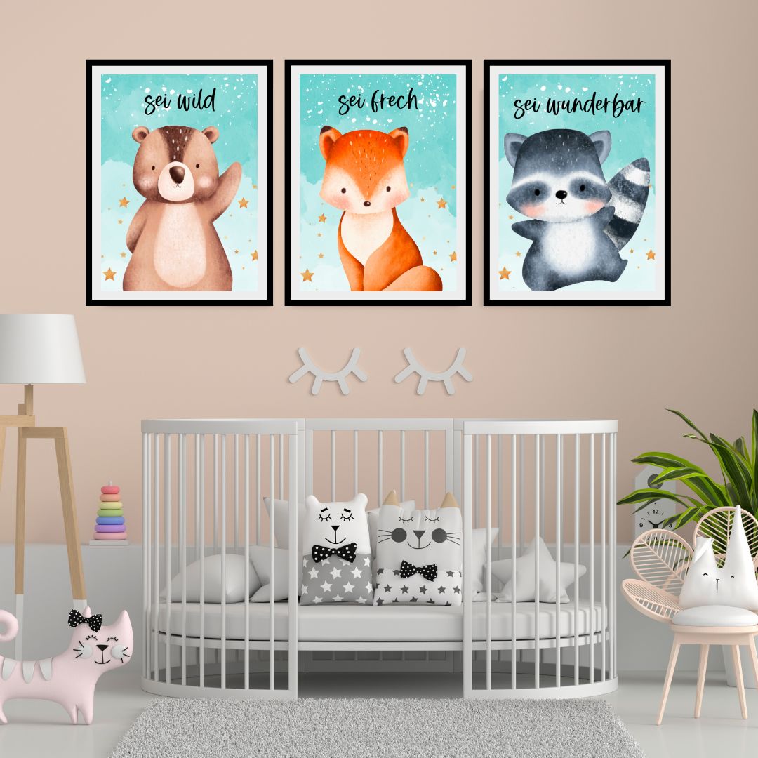 - Kinderzimmer Wandbilder 3er Set gerahmt