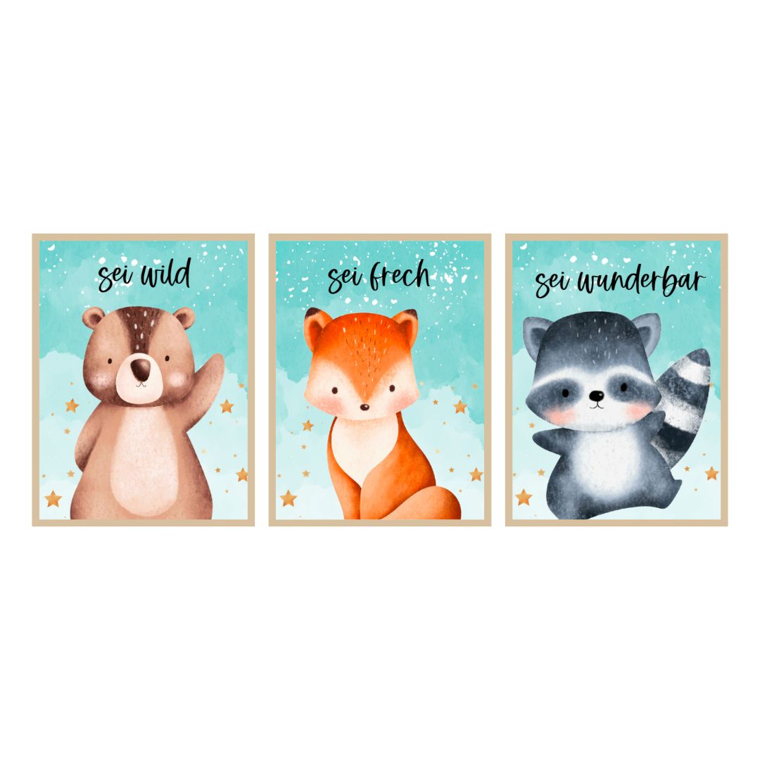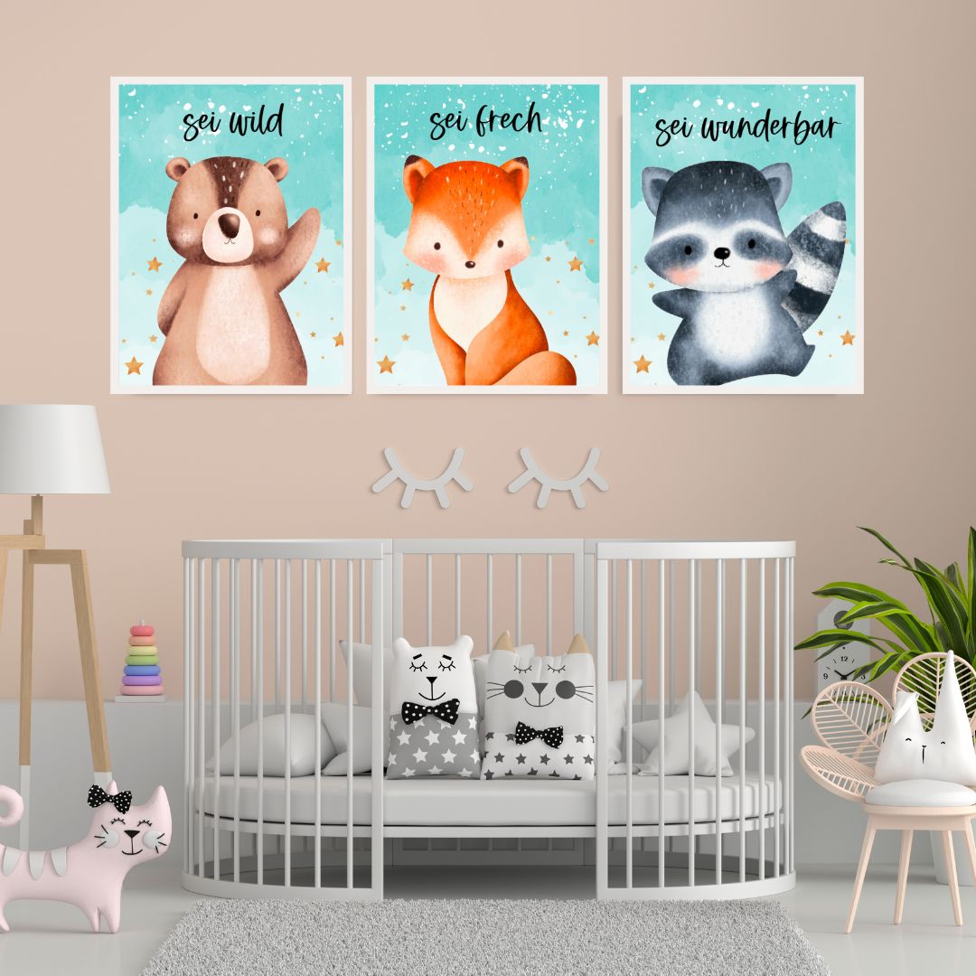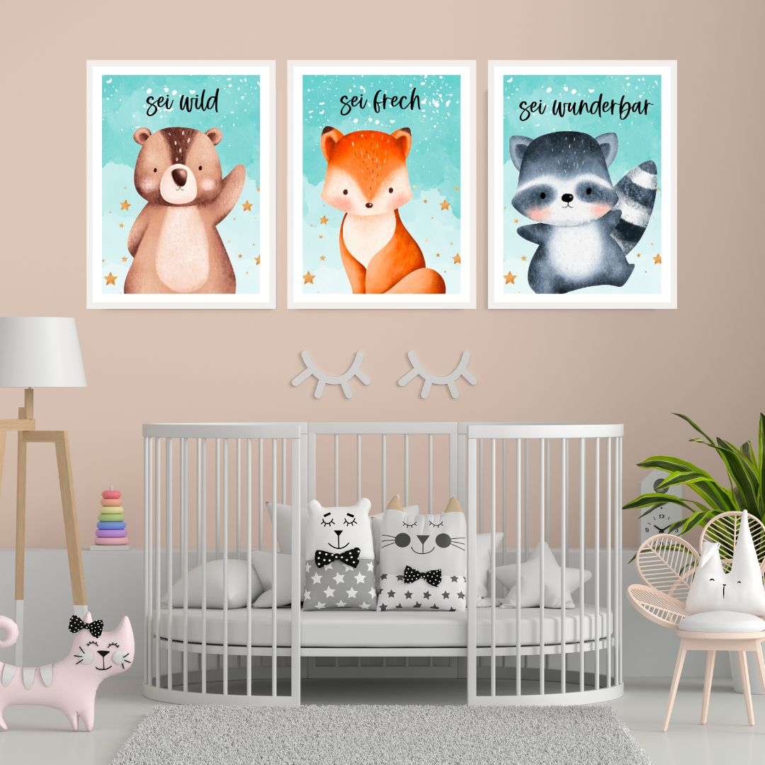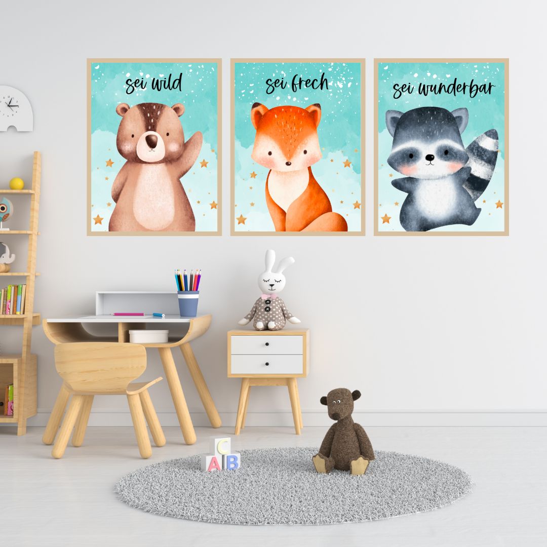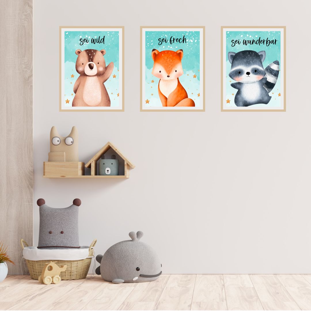 - Kinderzimmer Wandbilder 3er Set gerahmt