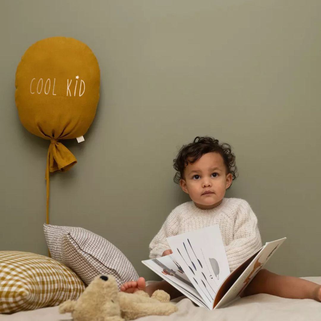Je nach Möbeln, Teppichen, Vorhängen oder Wandfarben kannst du mit dem senfgelben Ballon gezielt Akzente setzen und den Look deines Kinderzimmers abrunden.