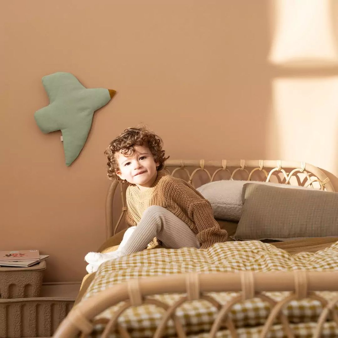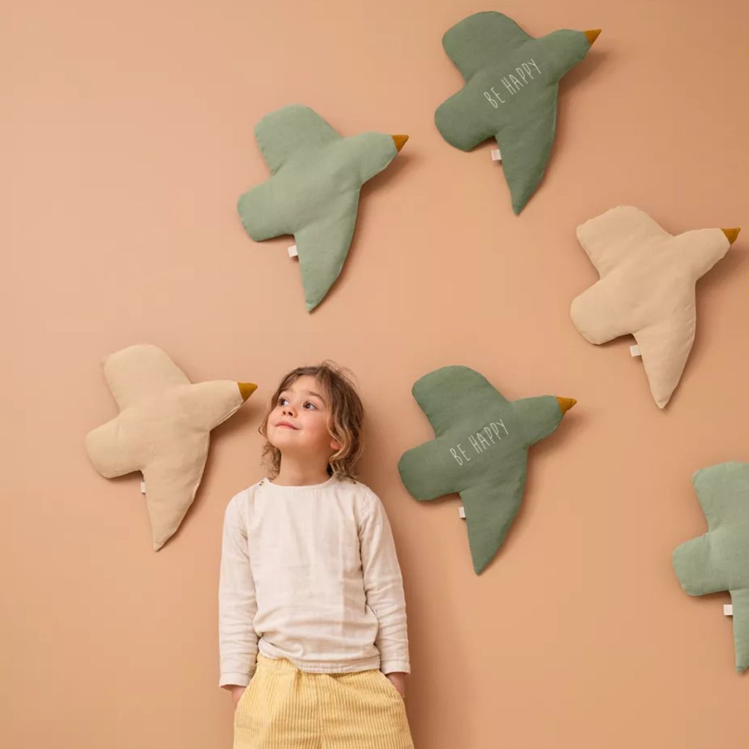 Unsere Wanddekoration besteht aus hochwertigen Materialien, die für ein angenehmes Raumgefühl sorgen. Das Außenmaterial besteht zu 71 % aus französischem Leinen und zu 29 % aus Baumwolle. Diese Kombination sorgt für eine angenehme Haptik und einen natürlichen Look. Das Innenkissen hat einen Bezug aus 100 % Baumwolle und ist mit 100 % Polyester gefüllt. Die Verarbeitung ist besonders hochwertig und langlebig. Der Vogel ist nicht nur ein optisches Highlight, sondern auch angenehm weich und leicht, was ihn besonders sicher für den Einsatz im Kinderzimmer macht.