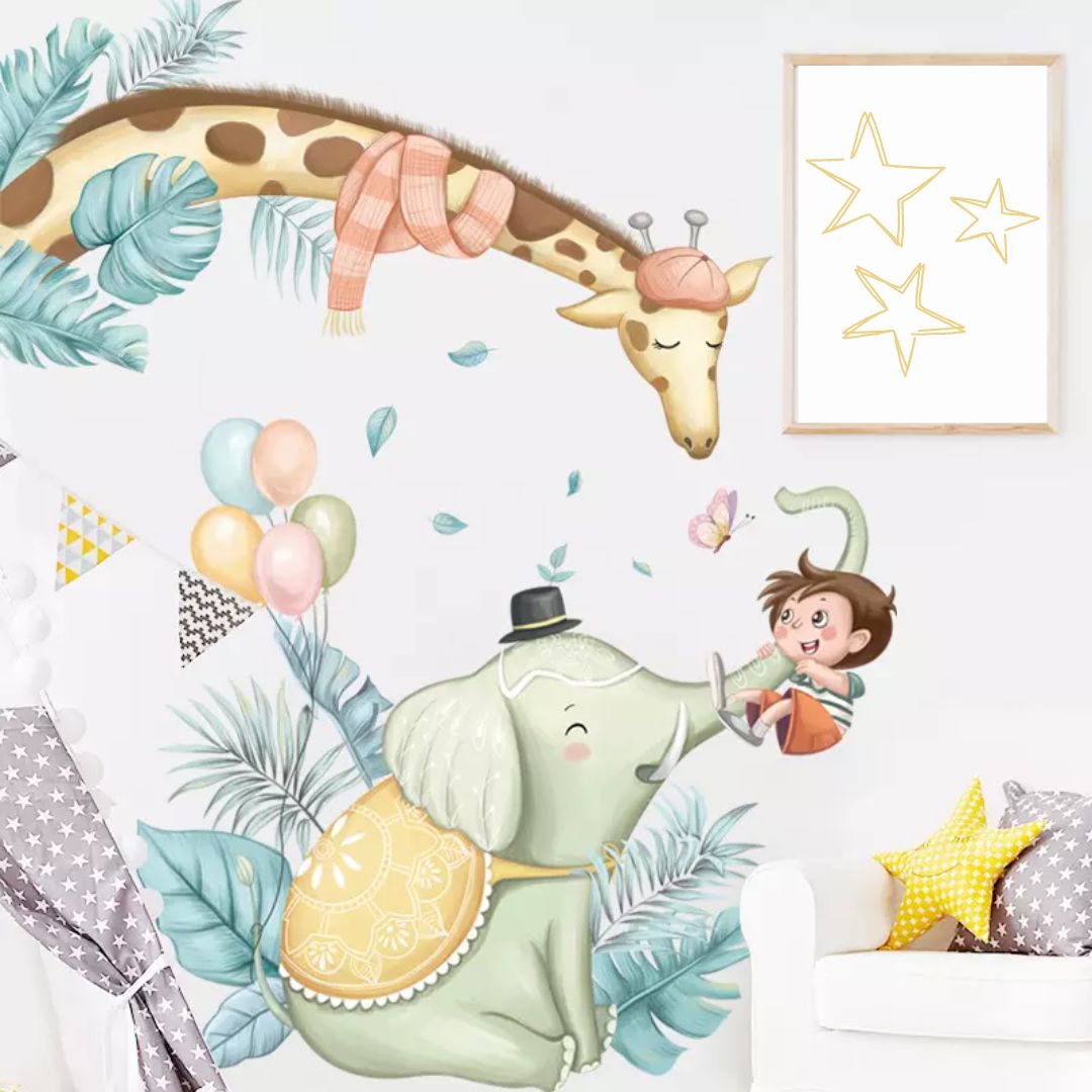 Wandtattoo "Dschungel Giraffe und Elefant"