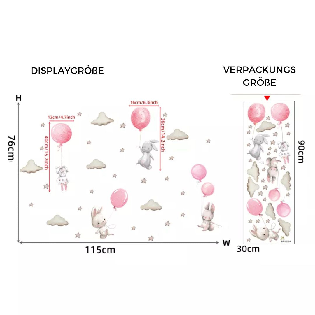 - mit Hasen, fliegenden Ballons, Wolken und Sternen
