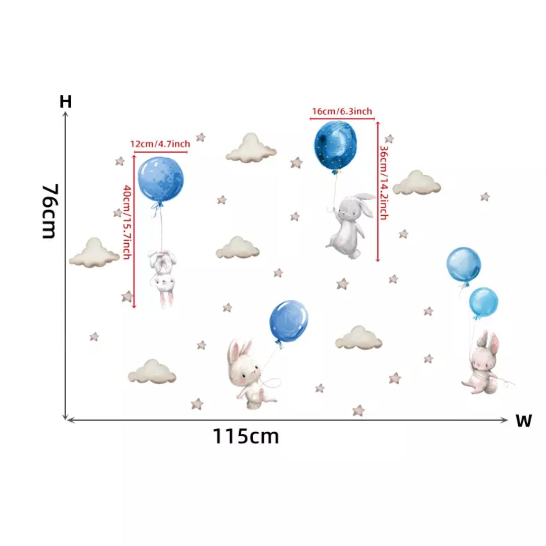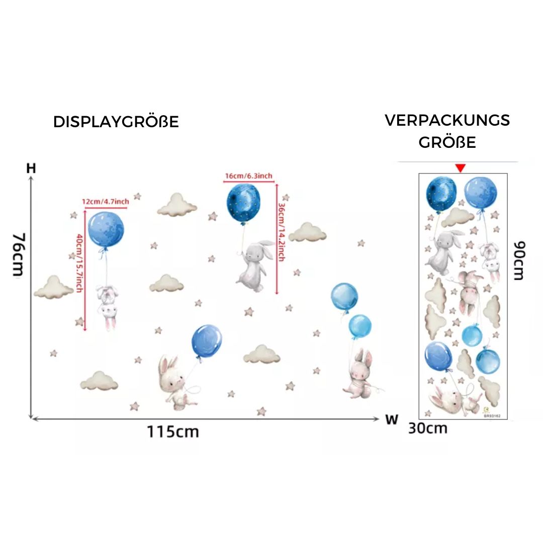 Wandtattoo Kinderzimmer "Hasen im Himmel" blau