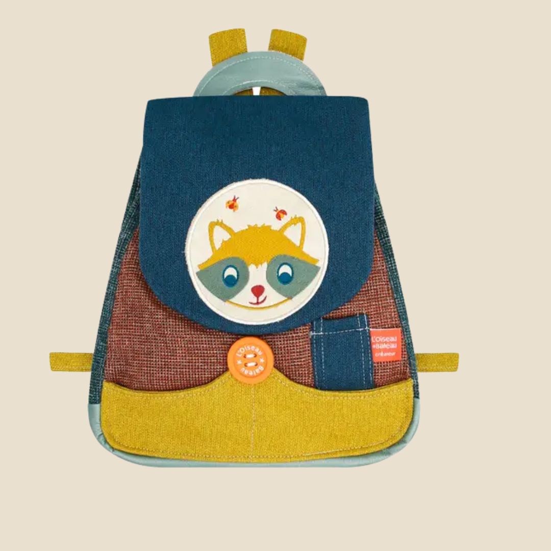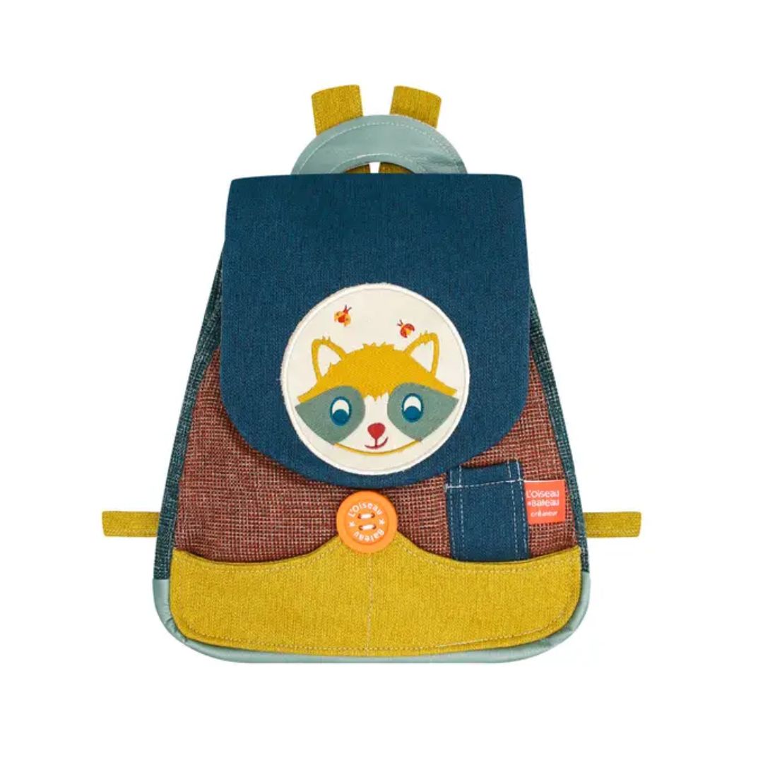 Produktinformationen zum Waschbär Kinderrucksack blau/braun/senfgelb: