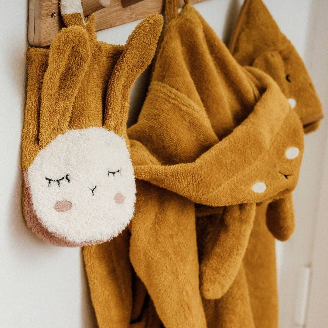 Die Bio-Baumwolle ist besonders weich und sanft zur empfindlichen Kinderhaut. Der Hasen-Waschlappen reinigt gründlich, ohne die Haut zu reizen, und bietet gleichzeitig ein angenehmes Gefühl auf der Haut deines Kindes.
