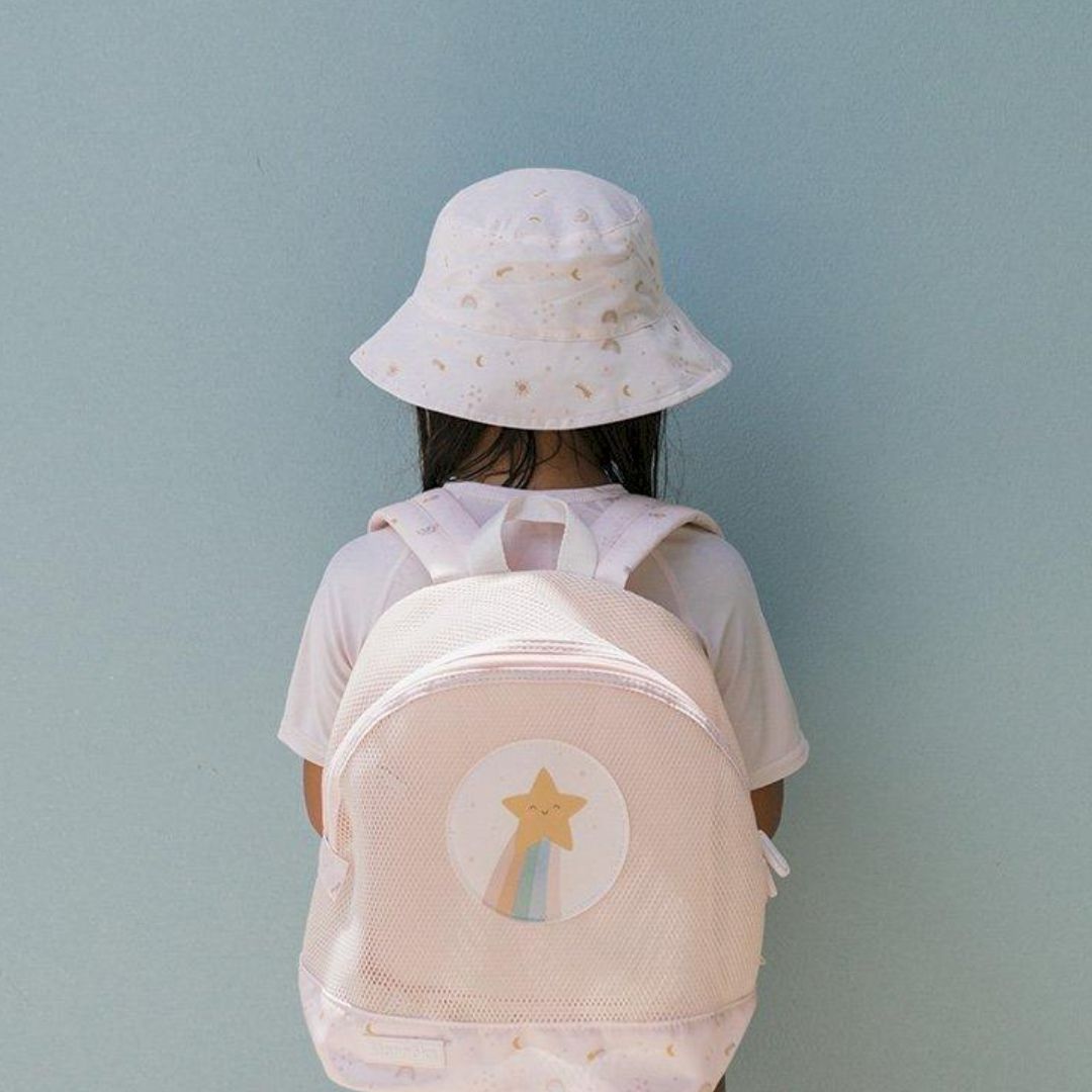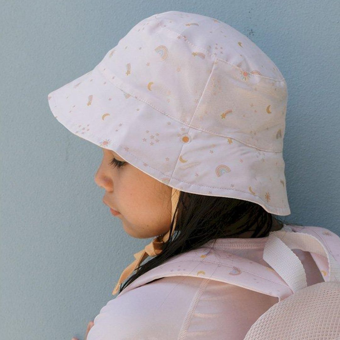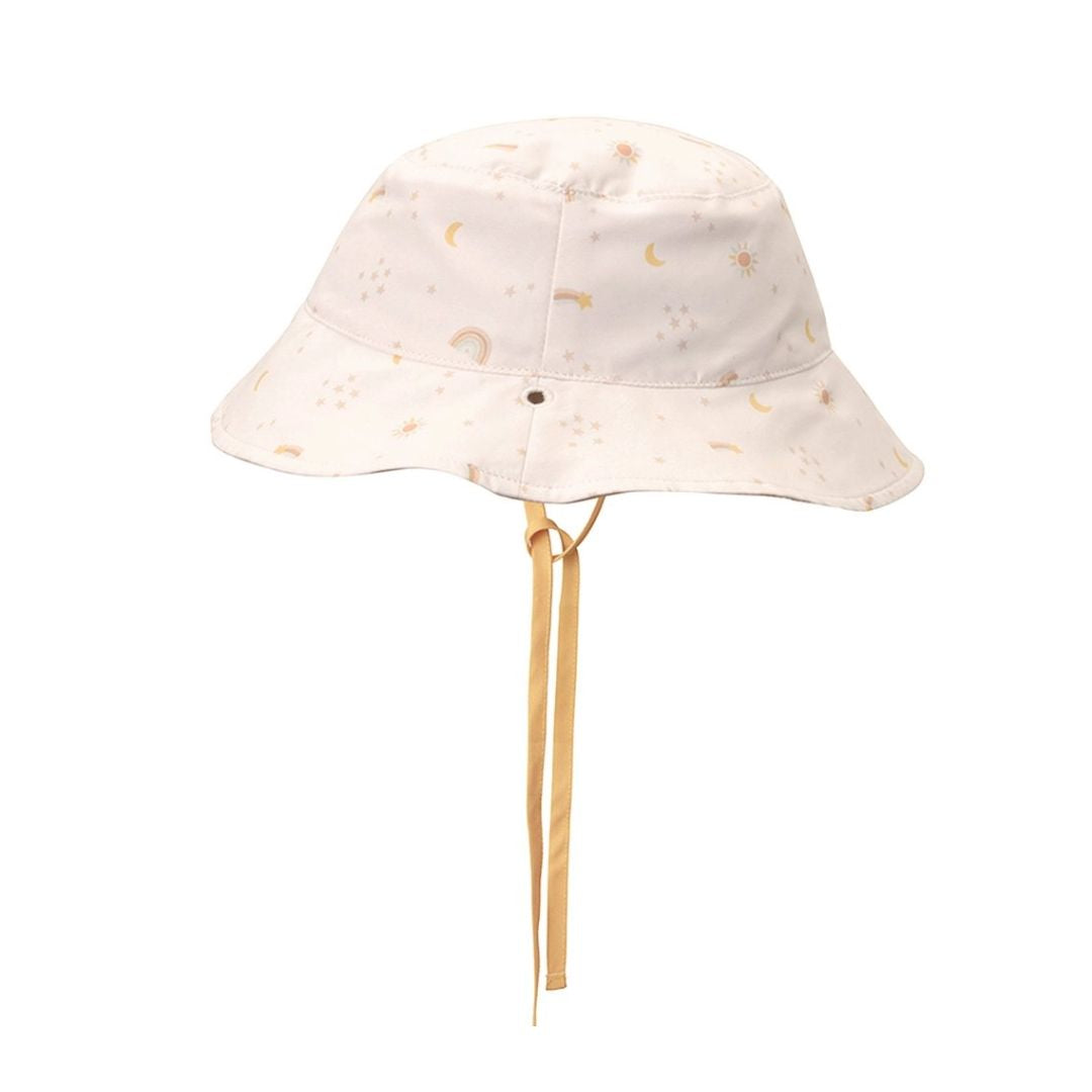 Wendbare Mütze „Starlight“ in Beige – perfekter Sonnenschutz mit Regenbögen und Himmelskörpern für Kinder