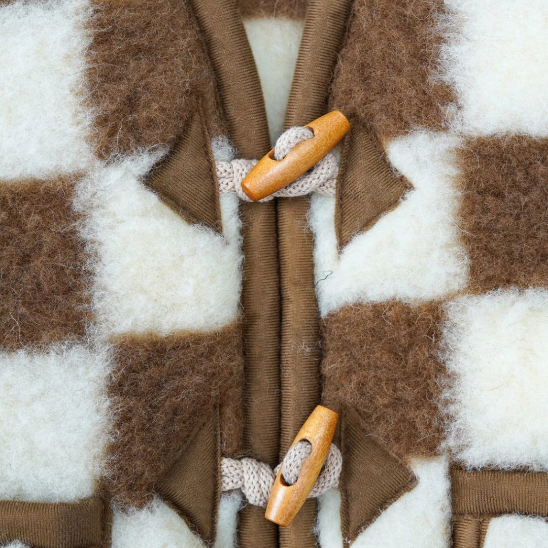 Wenn du für dein Kind eine warme, bequeme und stilvolle Kinder Weste aus Merinowolle suchst, wird dich die Brick Wollweste sofort begeistern. Ihr einzigartiges braun-cremefarbenes Karomuster erinnert an Ziegelsteine und macht sie zu einem fröhlichen Hingucker in jeder Jahreszeit. Diese limitierte Edition wurde speziell für Kinder entworfen, die sich gern frei bewegen, spielen und die Welt entdecken – und dabei warm und geborgen bleiben sollen. Die Brick Weste ist ein Kleidungsstück, das Funktionalität, Naturmaterial und modernes Design perfekt verbindet.