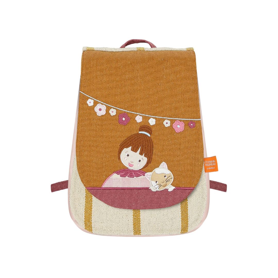 Das süße Motiv der Katze mit ihrem besten Freund ist liebevoll gestickt und verleiht dem Rucksack eine besondere, hochwertige Optik. Die Kombination aus Rosa, Beige und Mint wirkt harmonisch und modern, sodass der Rucksack nicht nur praktisch ist, sondern auch optisch ein echter Hingucker.