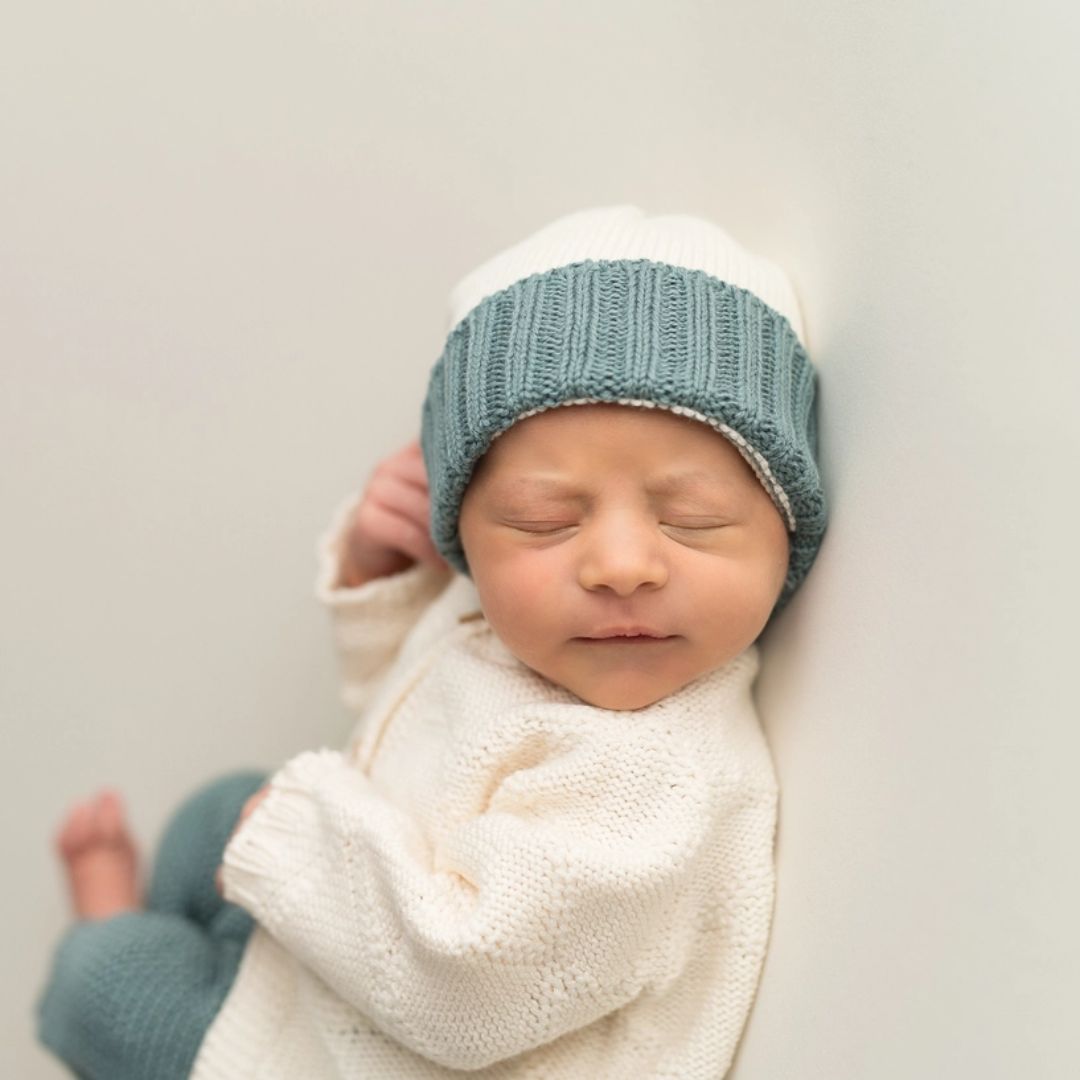 Warum die zweifarbige Strickmütze in Blau-Ecru perfekt für dein Baby ist: